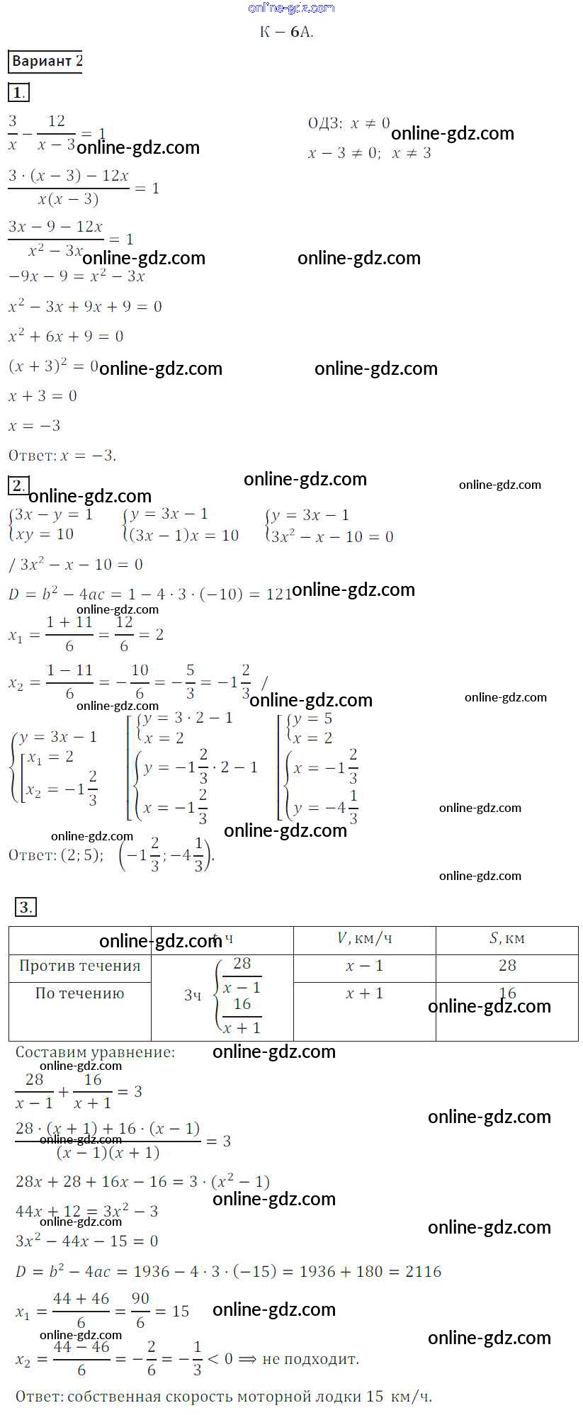 Готовые домашние задания по Алгебре за 8 класс Дидактические материалы Жохов, Макарычев 2014 - КР №6A Контрольные работы вариант 2