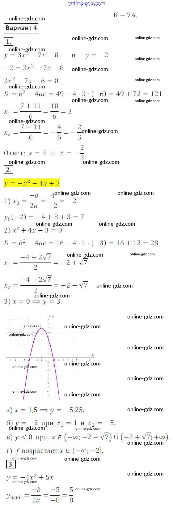 Готовые домашние задания по Алгебре за 8 класс Дидактические материалы Жохов, Макарычев 2014 - КР №7A Контрольные работы вариант 4