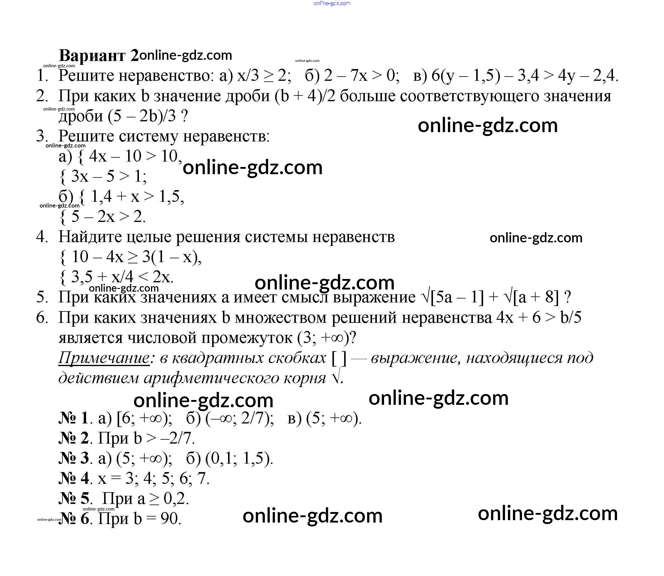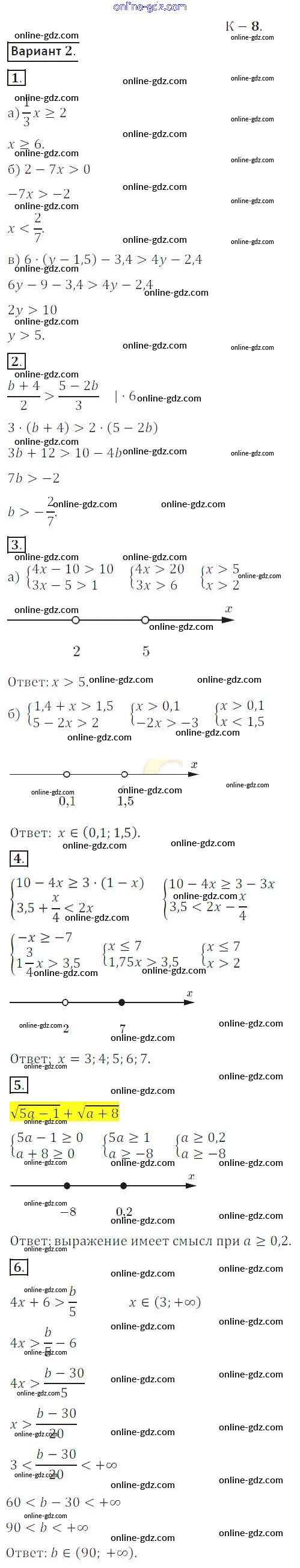 Готовые домашние задания по Алгебре за 8 класс Дидактические материалы Жохов, Макарычев 2014 - КР №8 Контрольные работы вариант 2