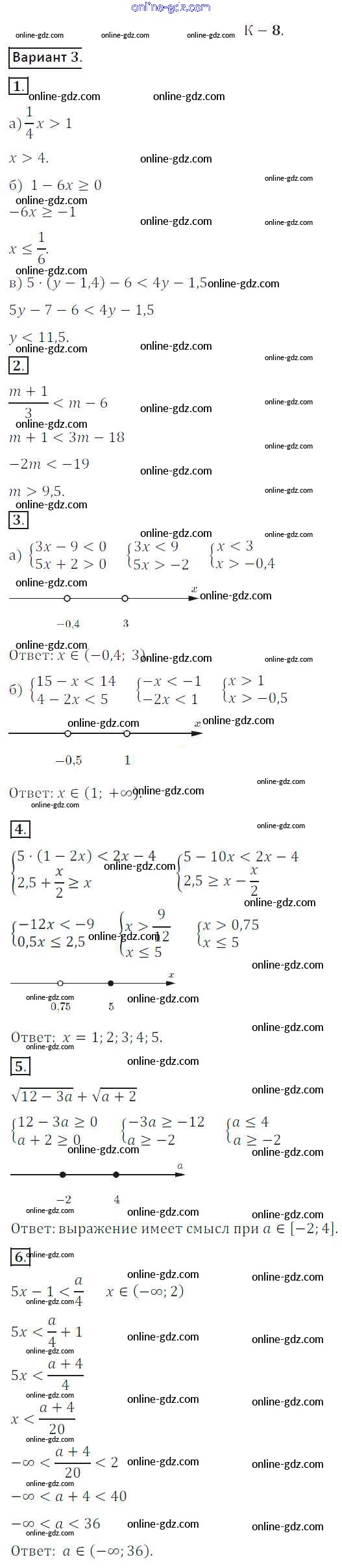 Готовые домашние задания по Алгебре за 8 класс Дидактические материалы Жохов, Макарычев 2014 - КР №8 Контрольные работы вариант 3