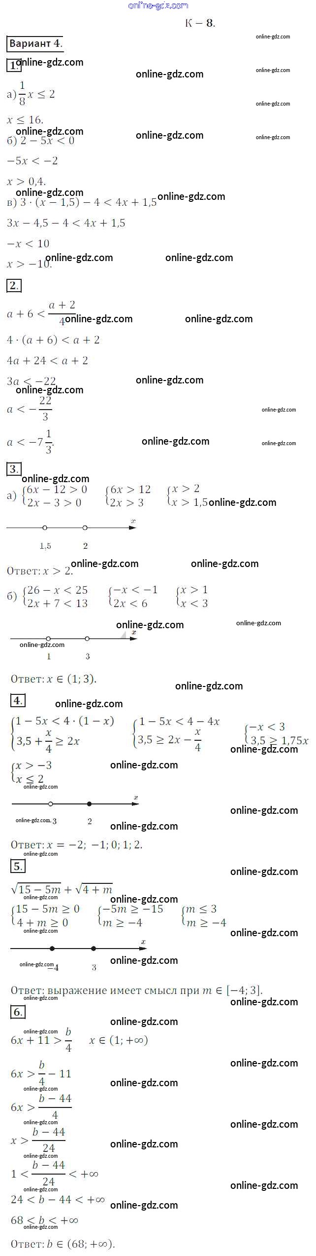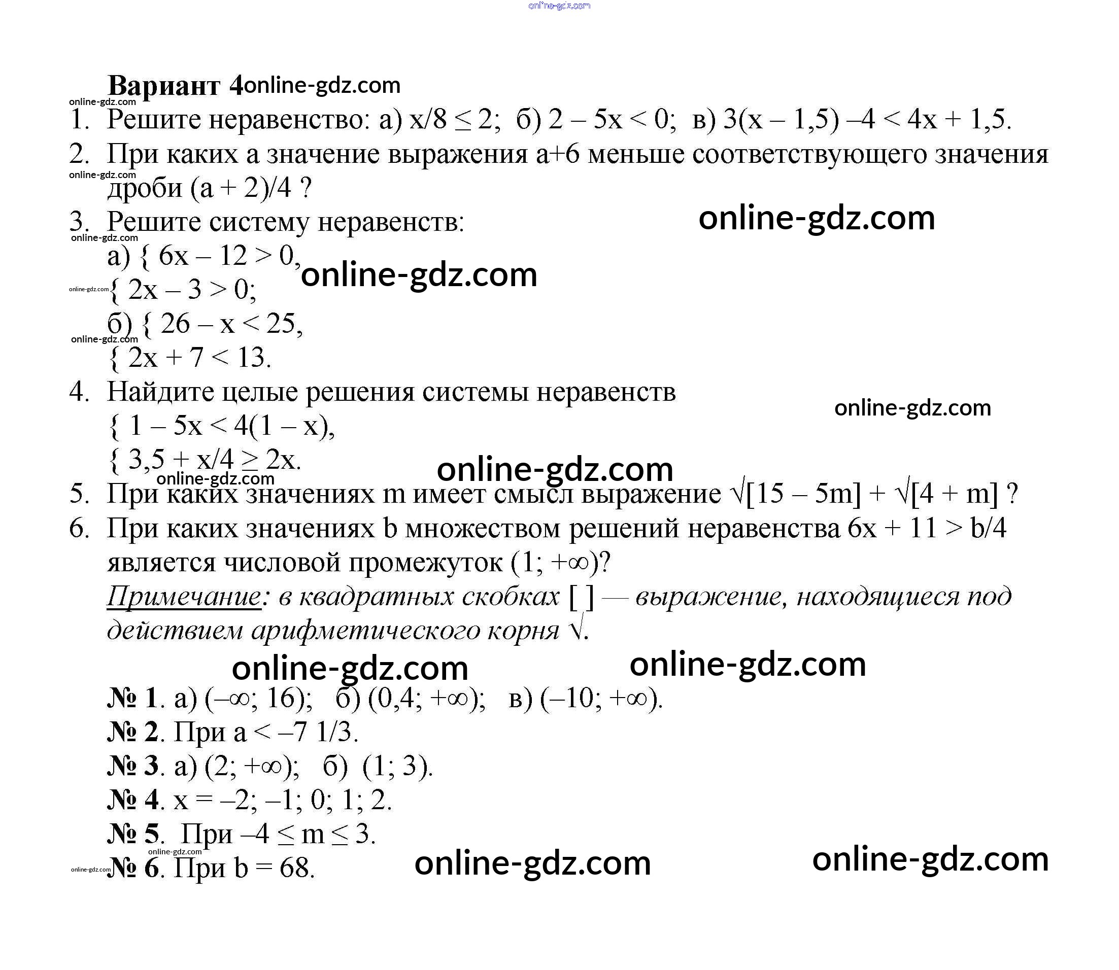 Готовые домашние задания по Алгебре за 8 класс Дидактические материалы Жохов, Макарычев 2014 - КР №8 Контрольные работы вариант 4