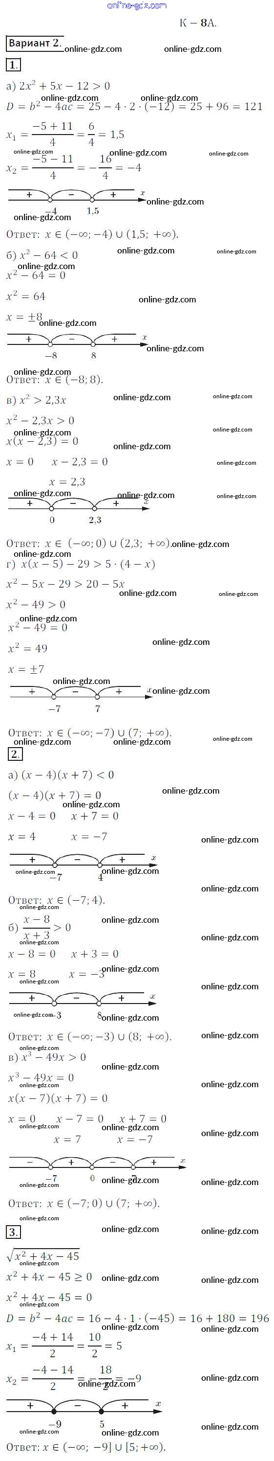 Готовые домашние задания по Алгебре за 8 класс Дидактические материалы Жохов, Макарычев 2014 - КР №8A Контрольные работы вариант 2