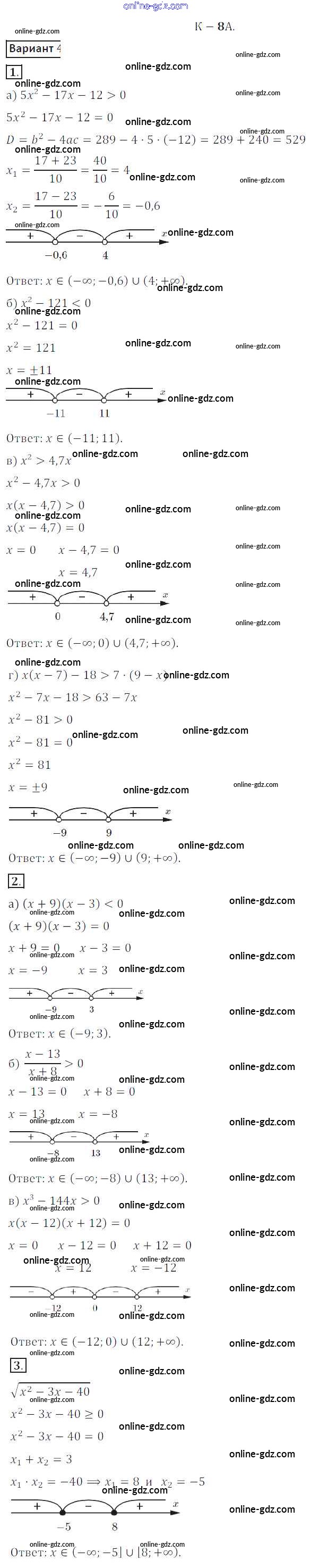 Готовые домашние задания по Алгебре за 8 класс Дидактические материалы Жохов, Макарычев 2014 - КР №8A Контрольные работы вариант 4