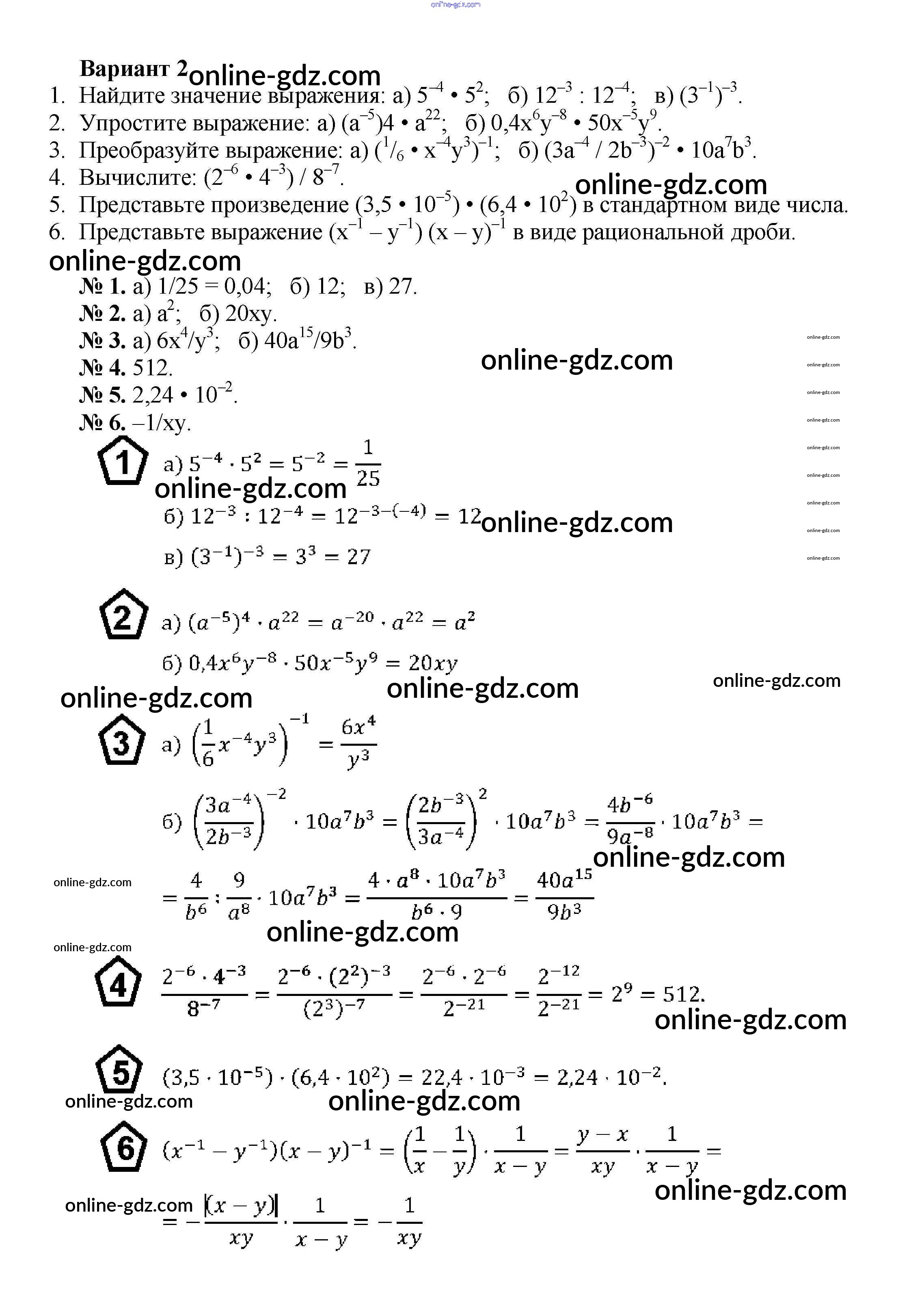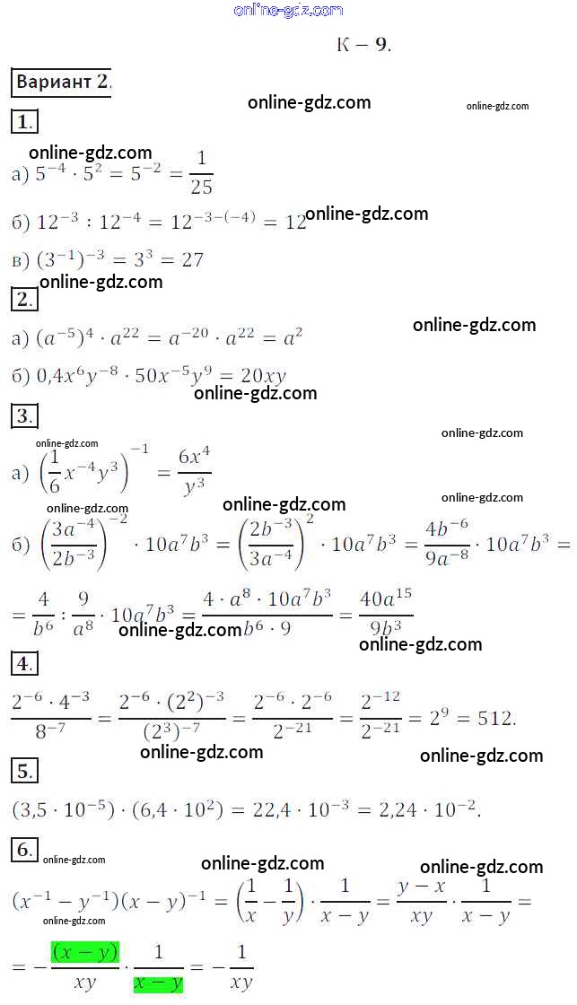 Готовые домашние задания по Алгебре за 8 класс Дидактические материалы Жохов, Макарычев 2014 - КР №9 Контрольные работы вариант 2