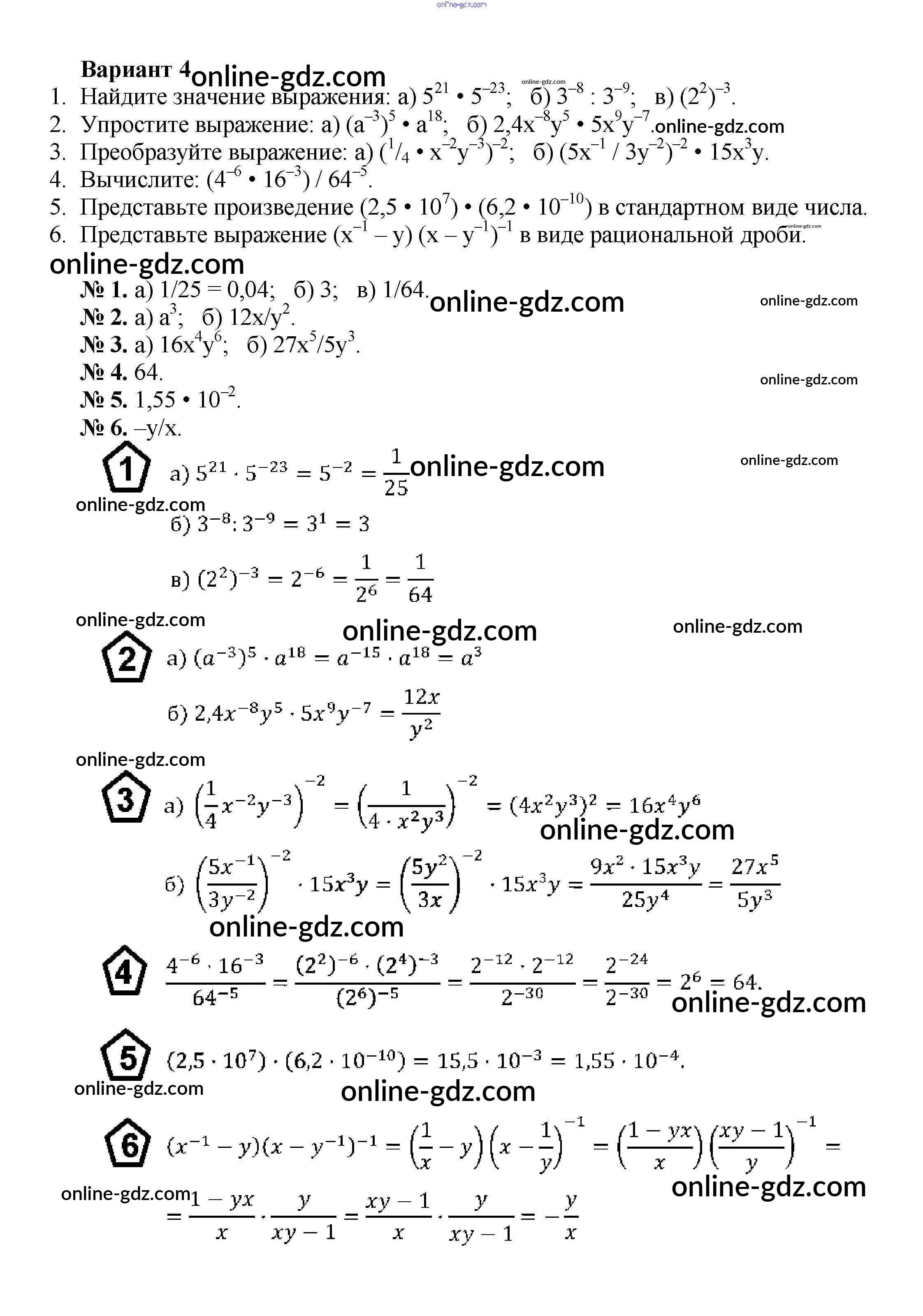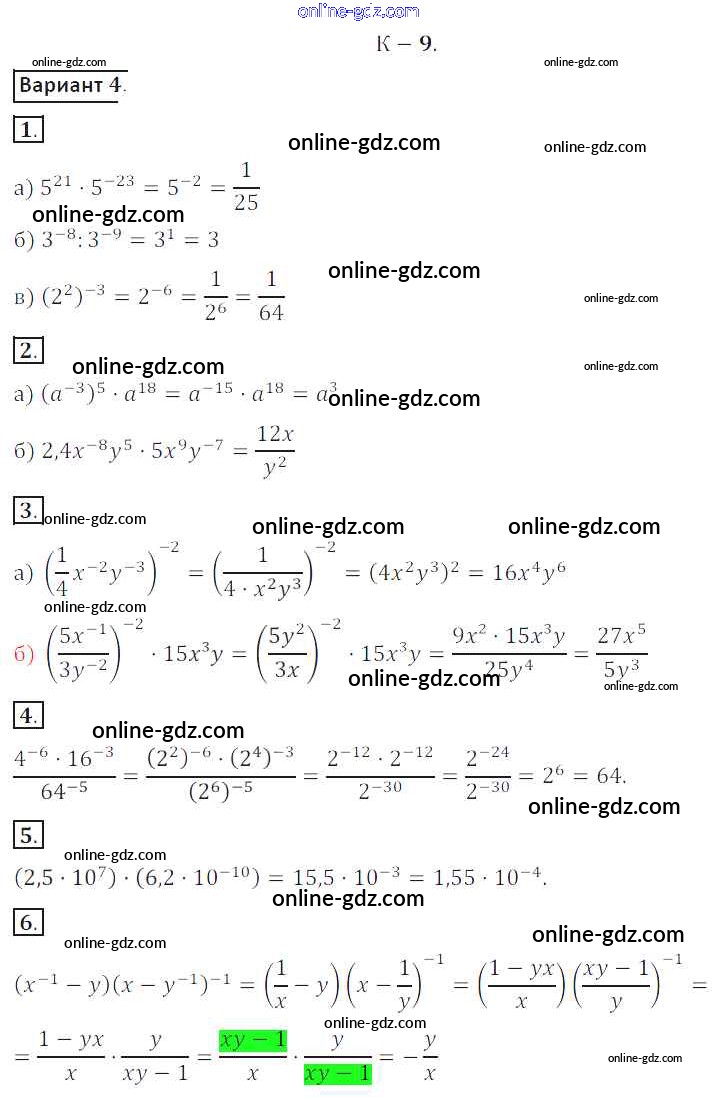 Готовые домашние задания по Алгебре за 8 класс Дидактические материалы Жохов, Макарычев 2014 - КР №9 Контрольные работы вариант 4
