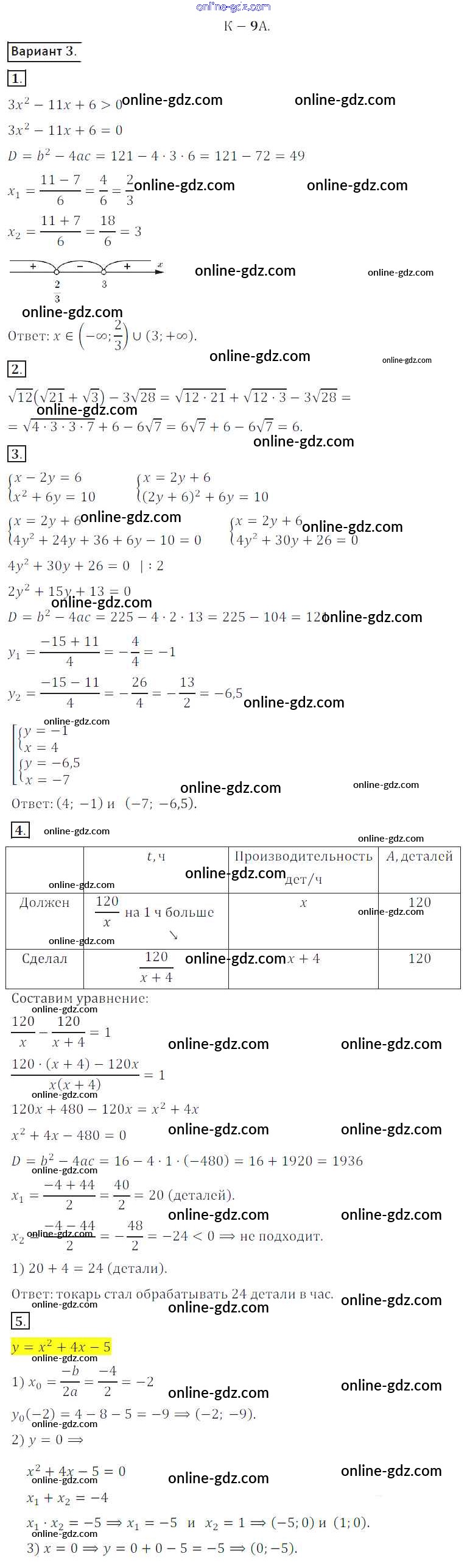 Готовые домашние задания по Алгебре за 8 класс Дидактические материалы Жохов, Макарычев 2014 - КР №9A Контрольные работы вариант 3