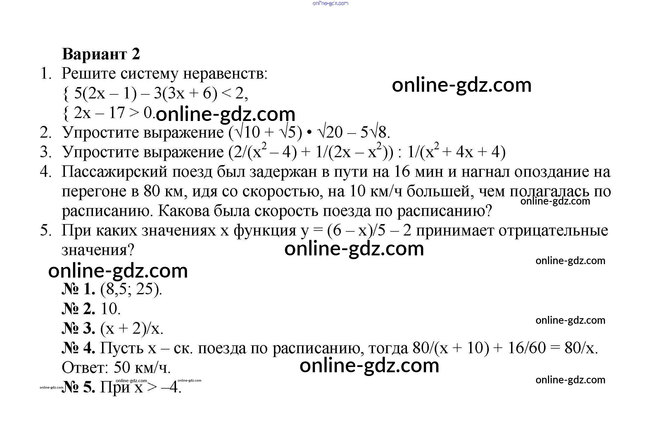 Готовые домашние задания по Алгебре за 8 класс Дидактические материалы Жохов, Макарычев 2014 - КР №10 Контрольные работы вариант 2
