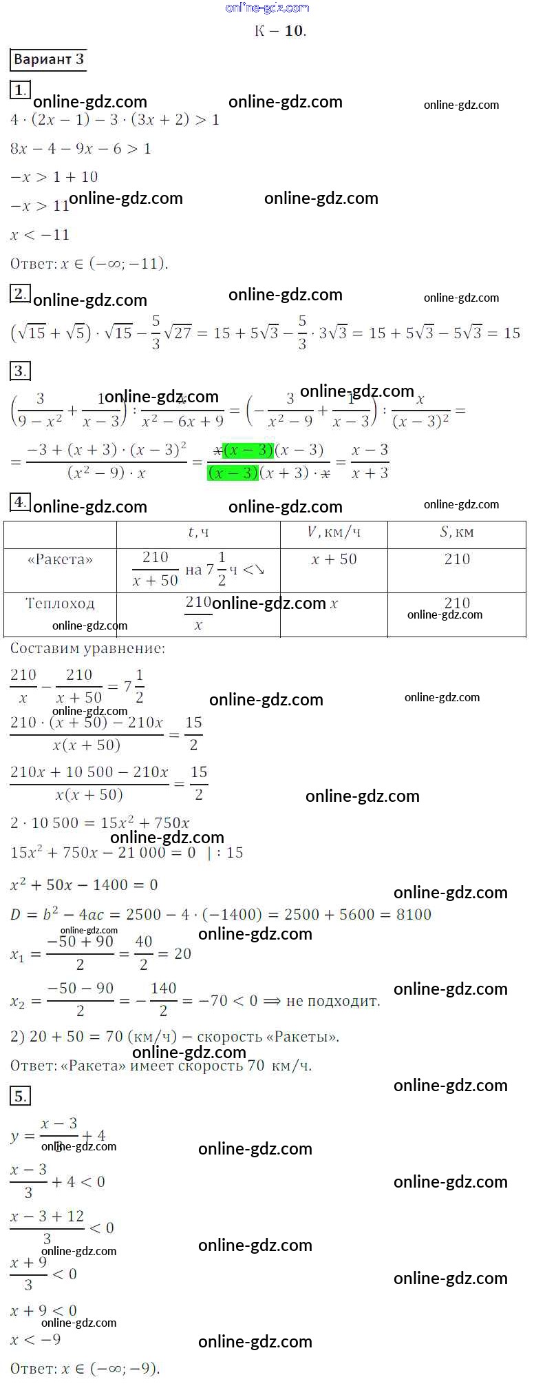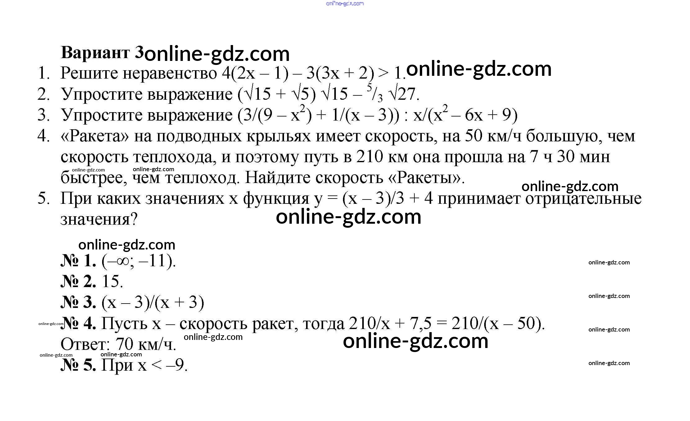 Готовые домашние задания по Алгебре за 8 класс Дидактические материалы Жохов, Макарычев 2014 - КР №10 Контрольные работы вариант 3
