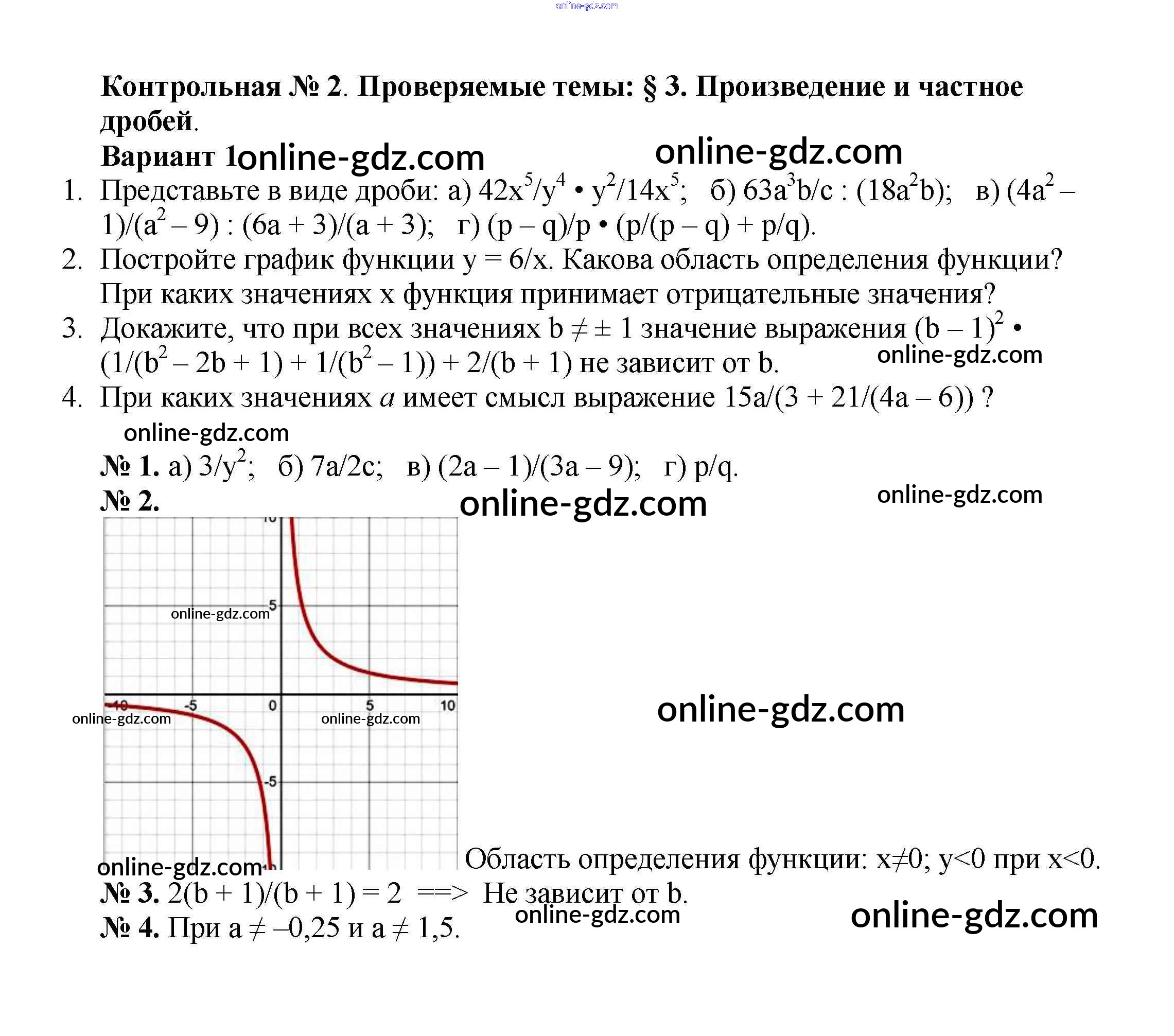 Готовые домашние задания по Алгебре за 8 класс Дидактические материалы Жохов, Макарычев 2014 - КР №2 Контрольные работы вариант 1
