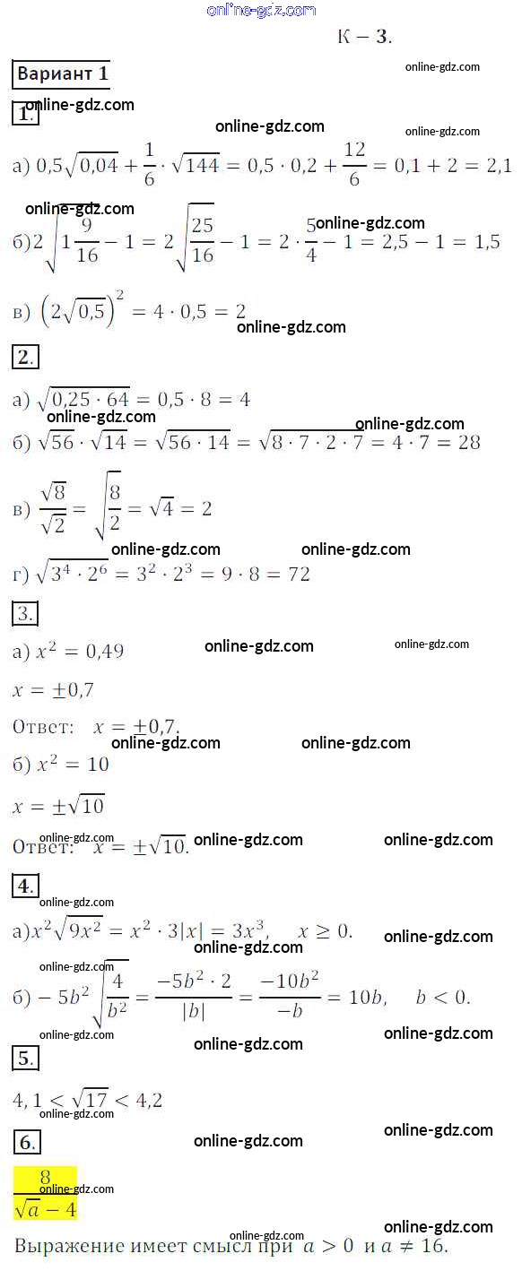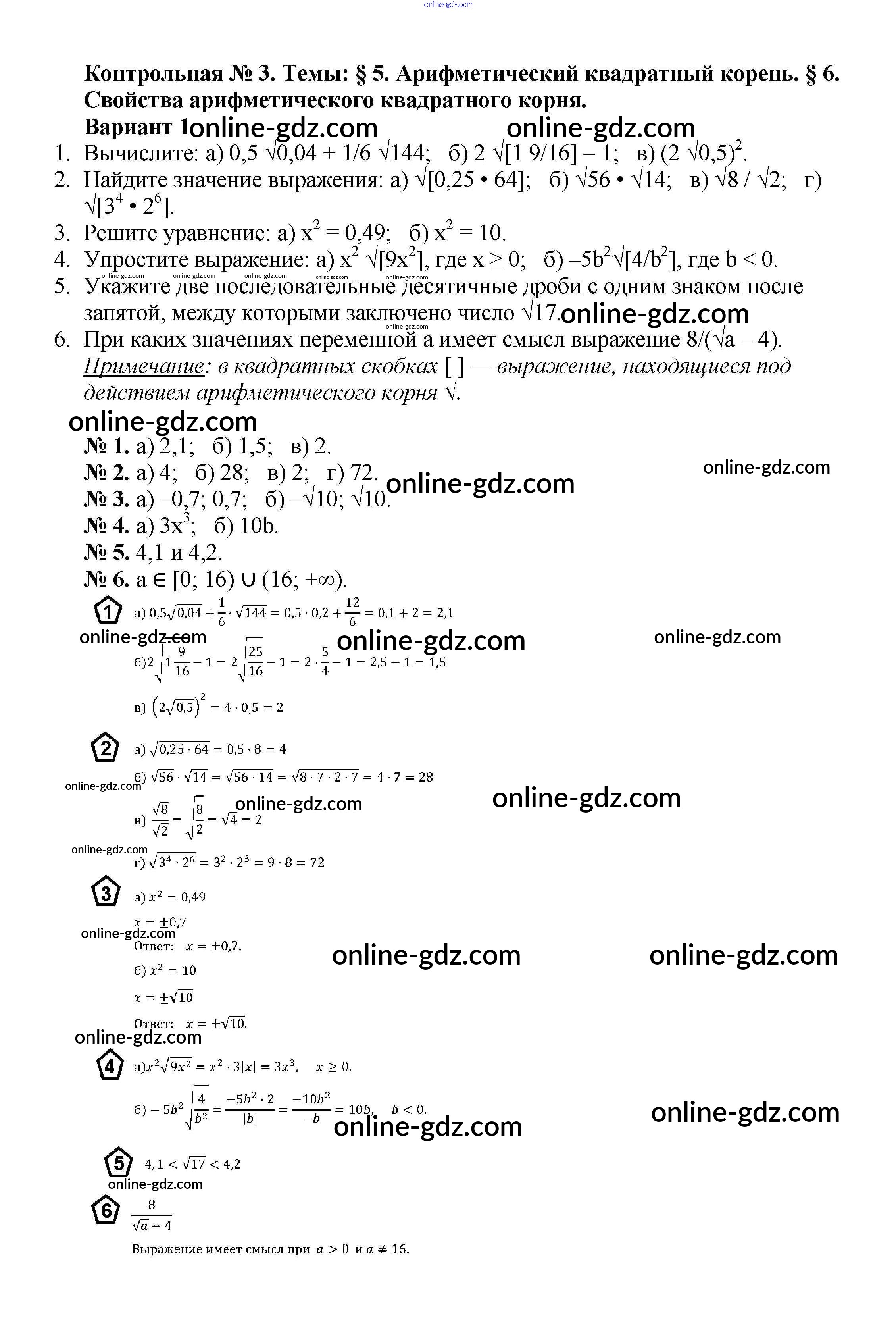 Готовые домашние задания по Алгебре за 8 класс Дидактические материалы Жохов, Макарычев 2014 - КР №3 Контрольные работы вариант 1