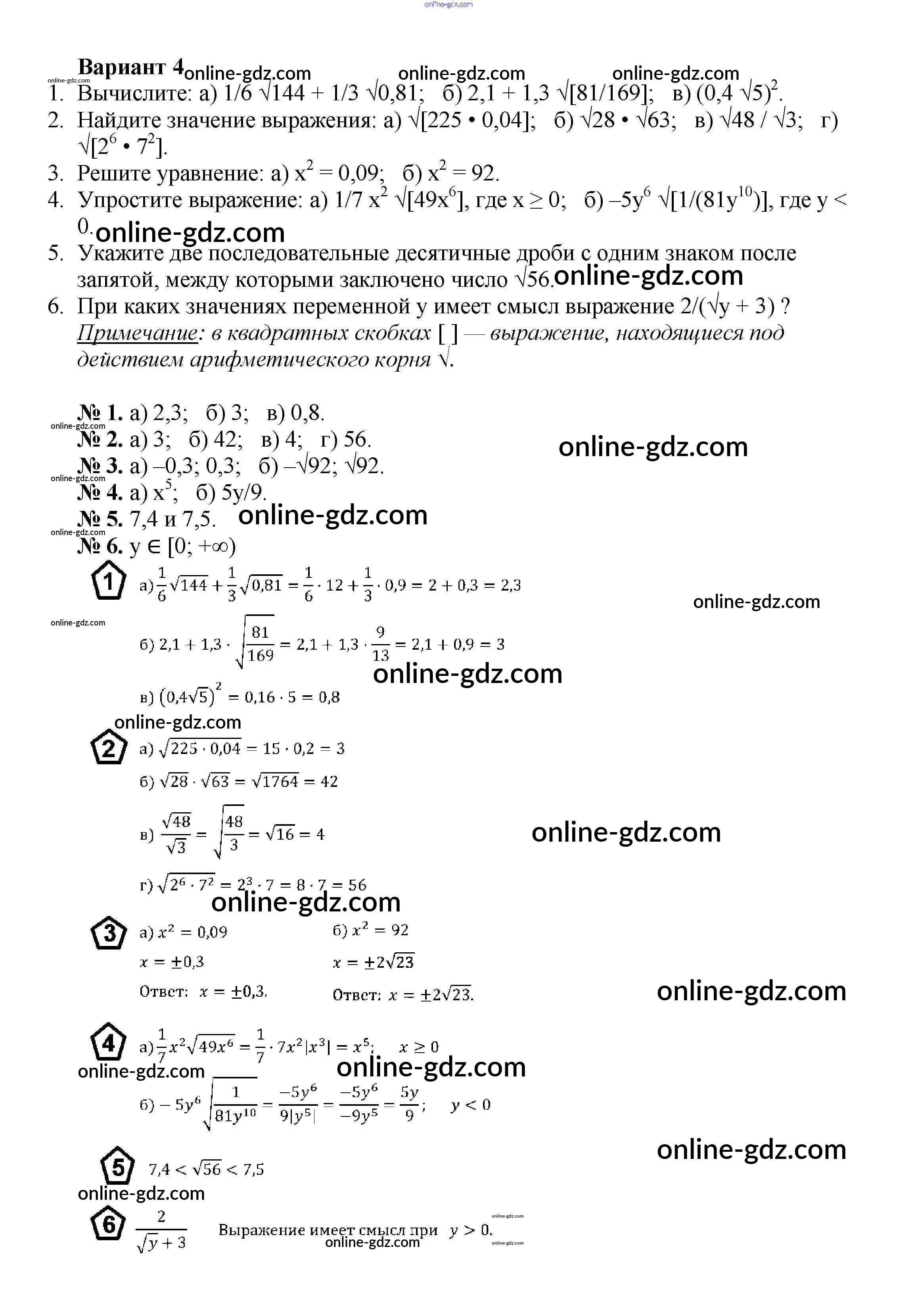 Готовые домашние задания по Алгебре за 8 класс Дидактические материалы Жохов, Макарычев 2014 - КР №3 Контрольные работы вариант 4