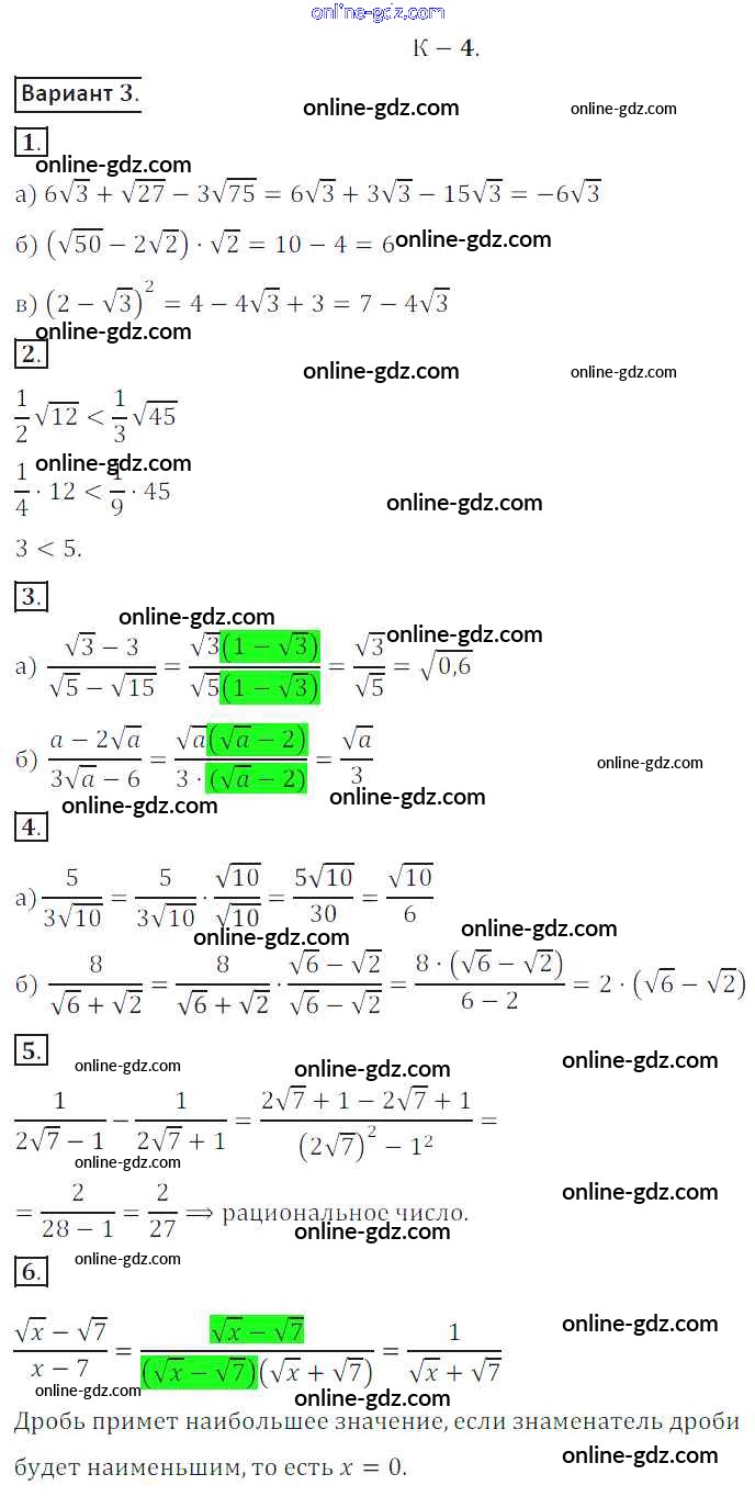 Готовые домашние задания по Алгебре за 8 класс Дидактические материалы Жохов, Макарычев 2014 - КР №4 Контрольные работы вариант 3