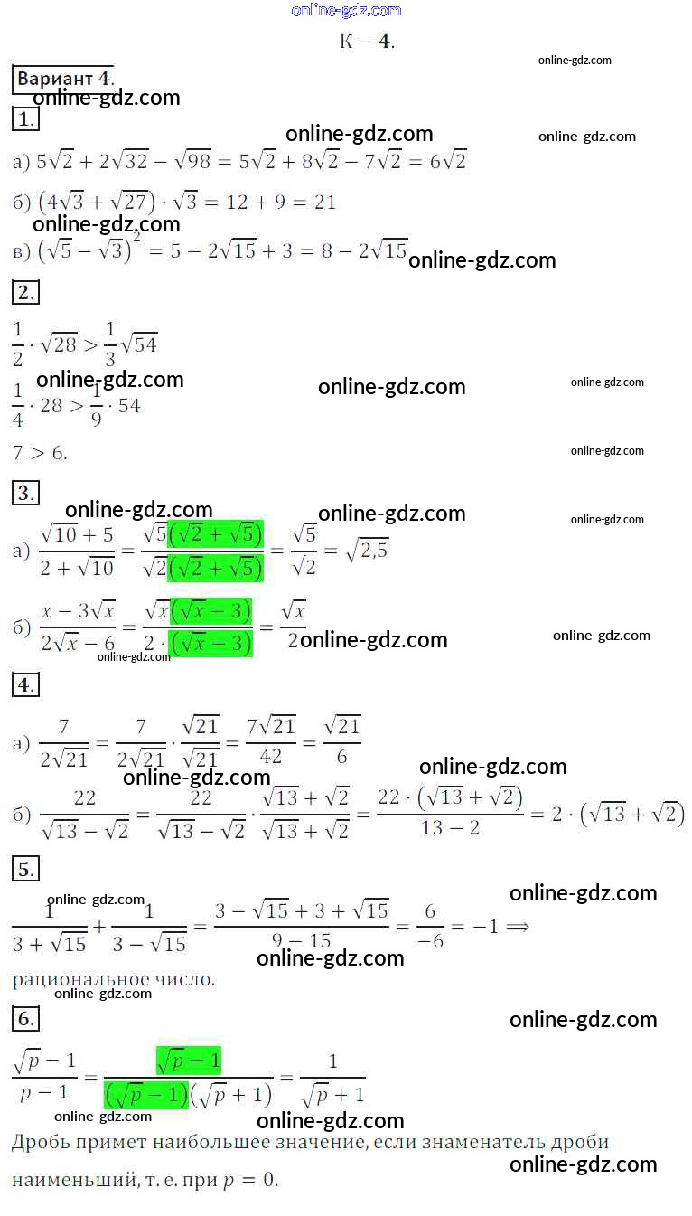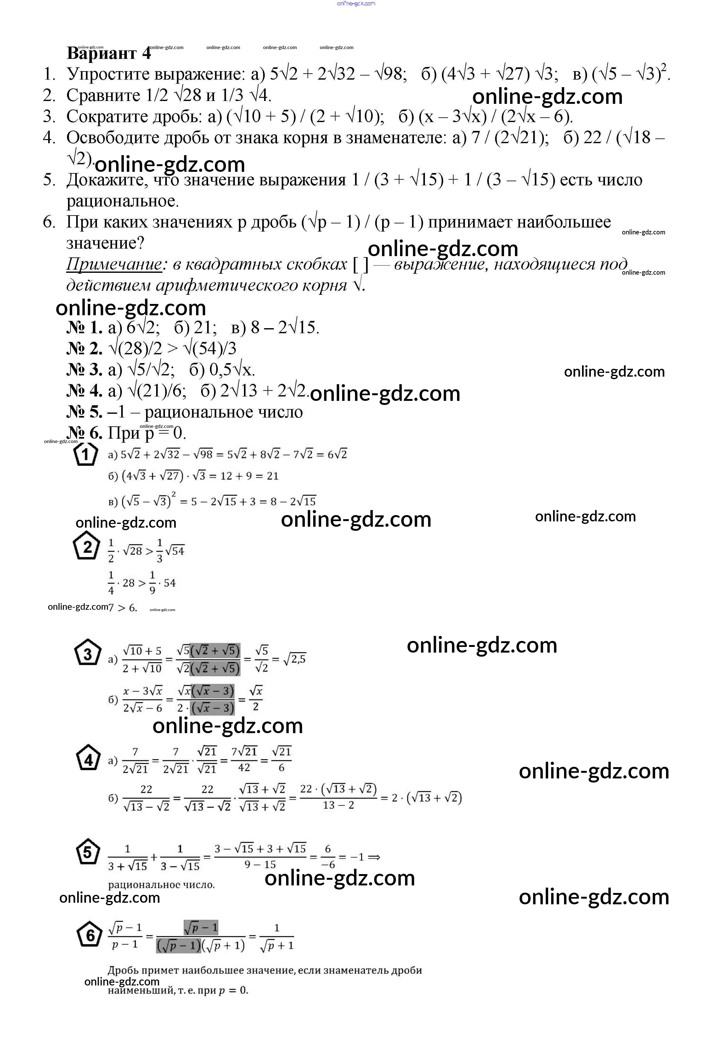 Готовые домашние задания по Алгебре за 8 класс Дидактические материалы Жохов, Макарычев 2014 - КР №4 Контрольные работы вариант 4