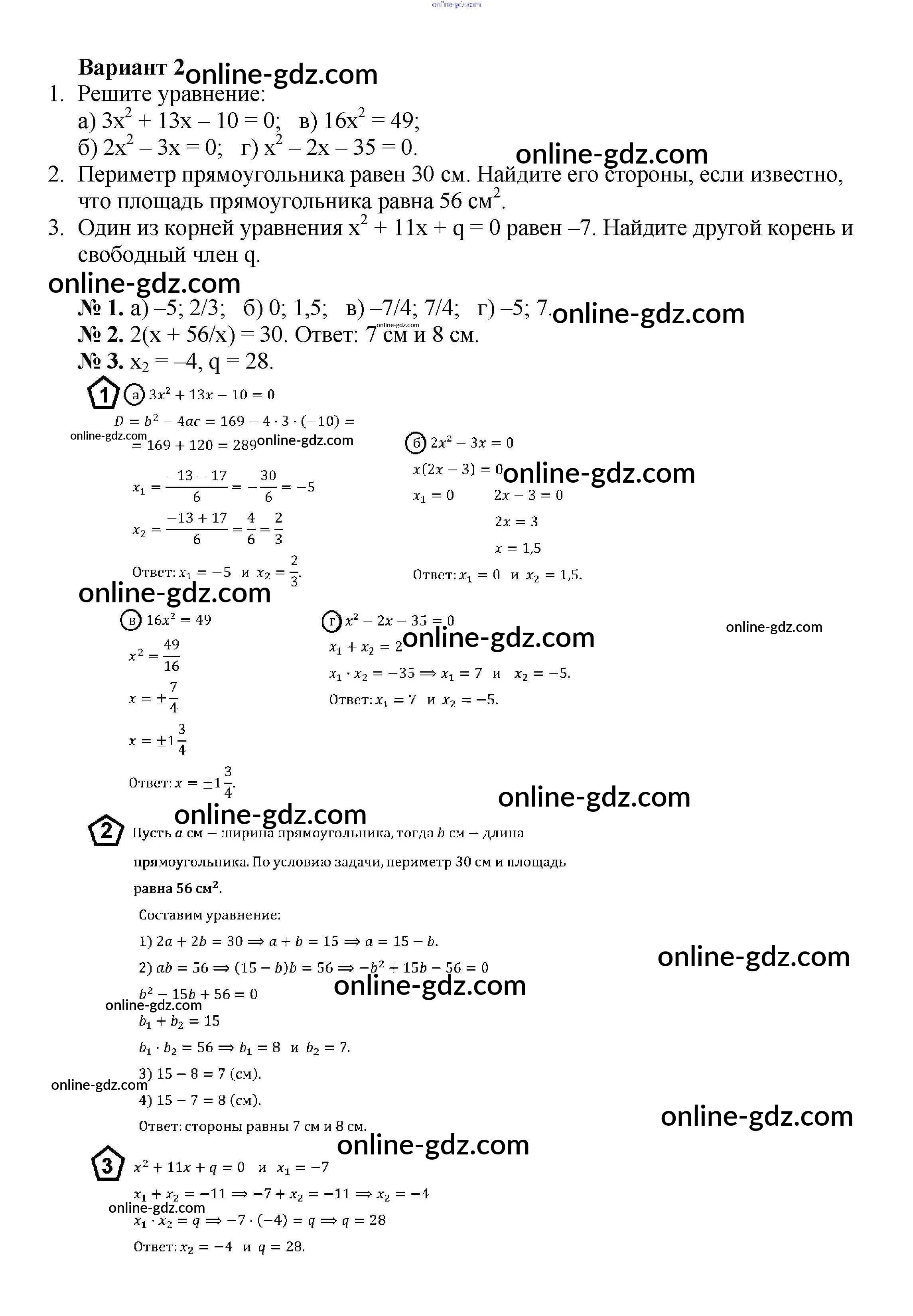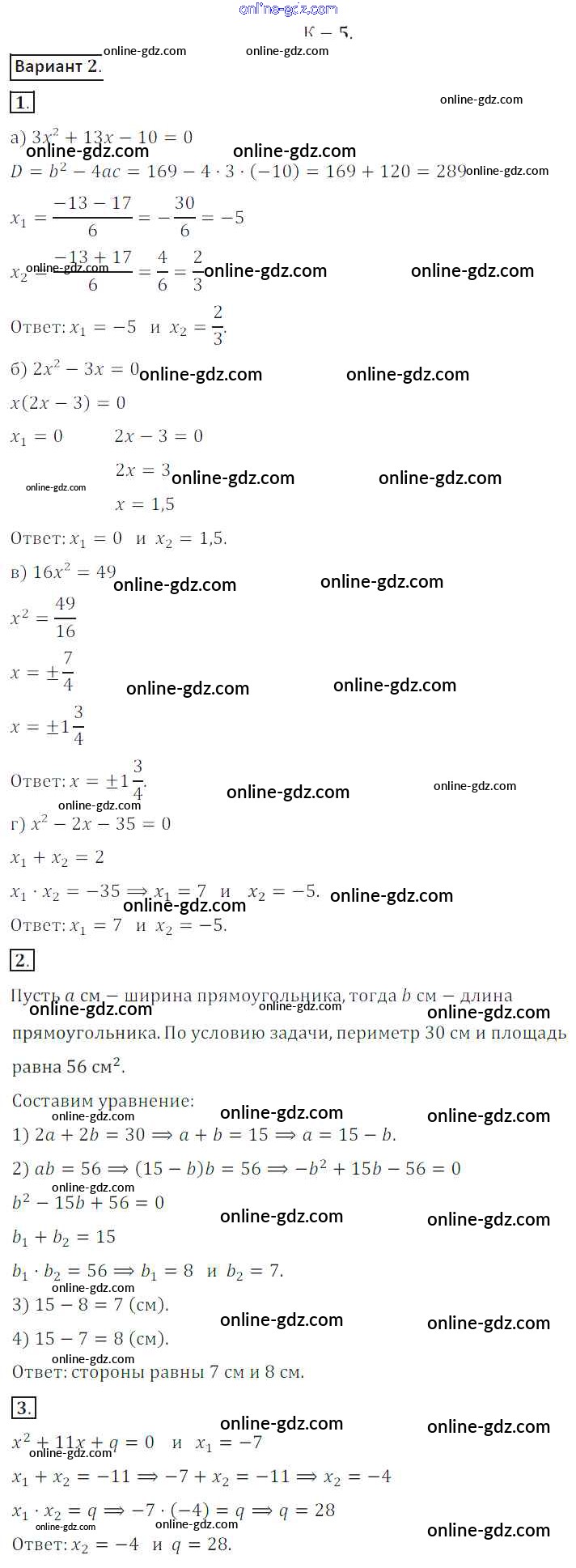 Готовые домашние задания по Алгебре за 8 класс Дидактические материалы Жохов, Макарычев 2014 - КР №5 Контрольные работы вариант 2