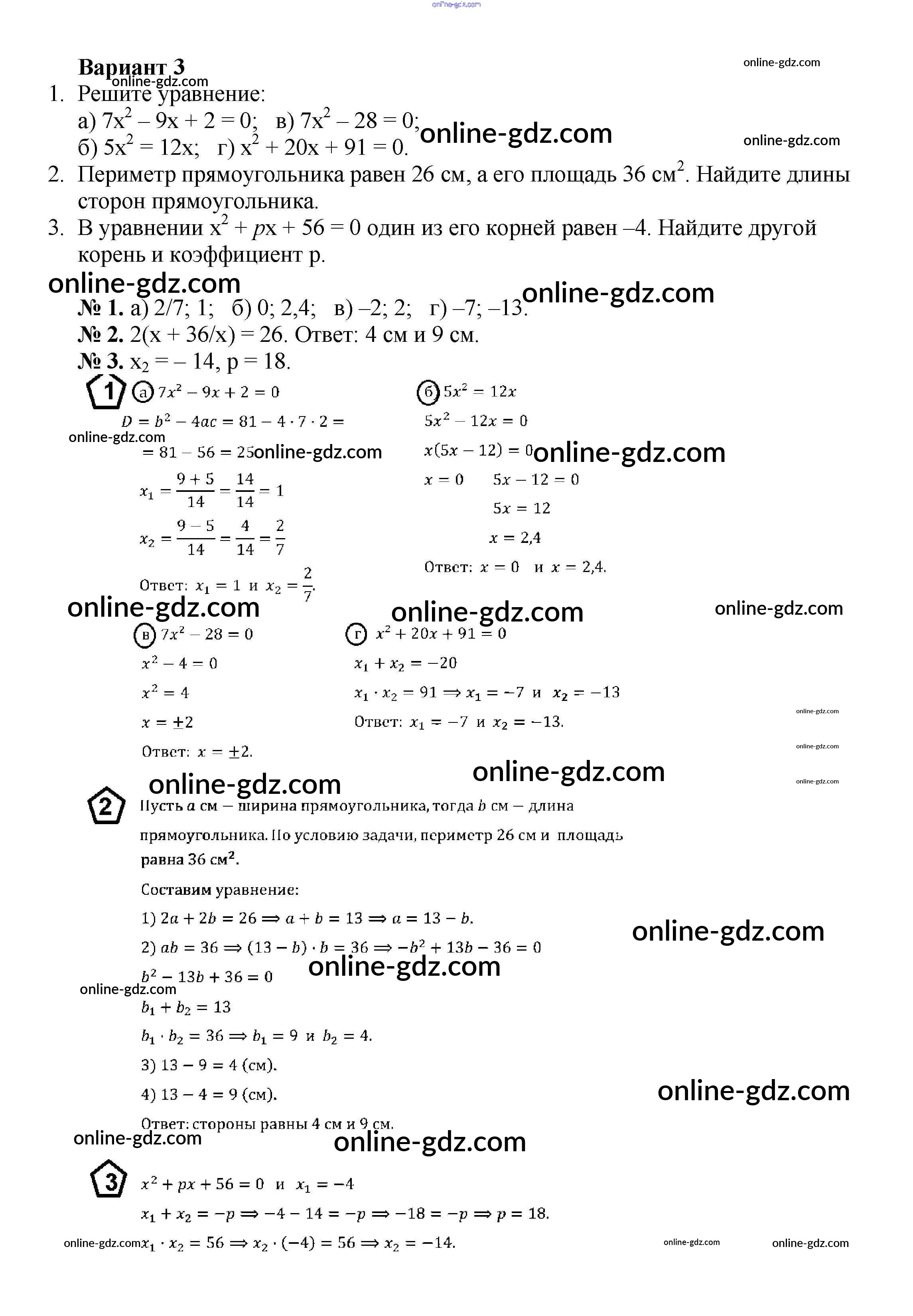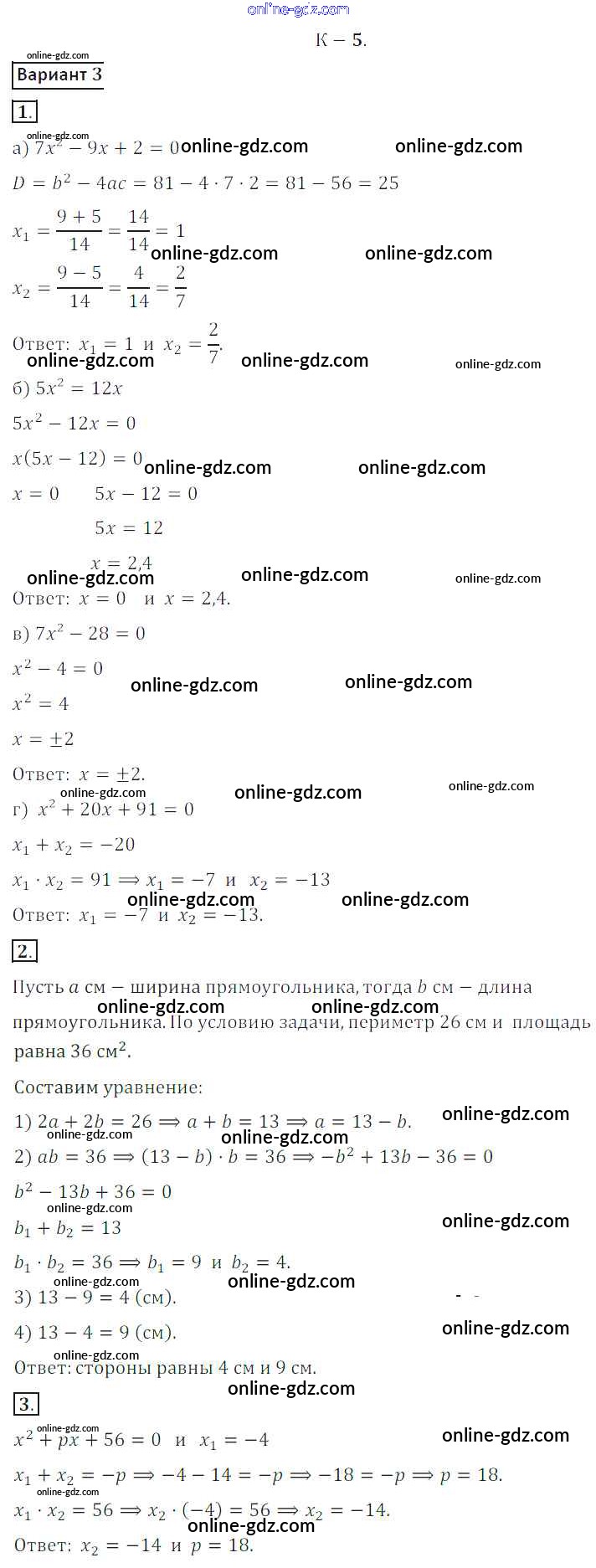 Готовые домашние задания по Алгебре за 8 класс Дидактические материалы Жохов, Макарычев 2014 - КР №5 Контрольные работы вариант 3