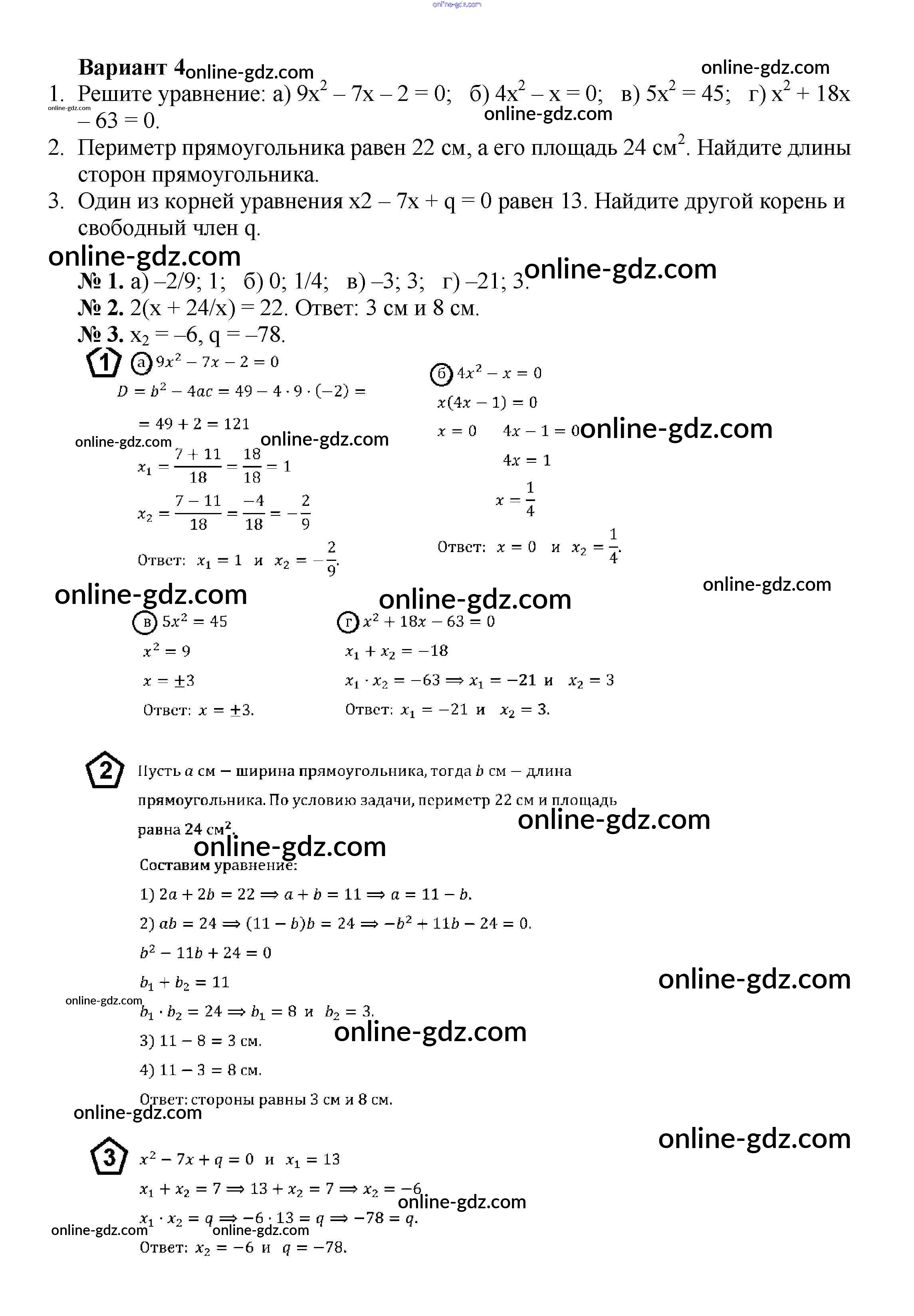 Готовые домашние задания по Алгебре за 8 класс Дидактические материалы Жохов, Макарычев 2014 - КР №5 Контрольные работы вариант 4
