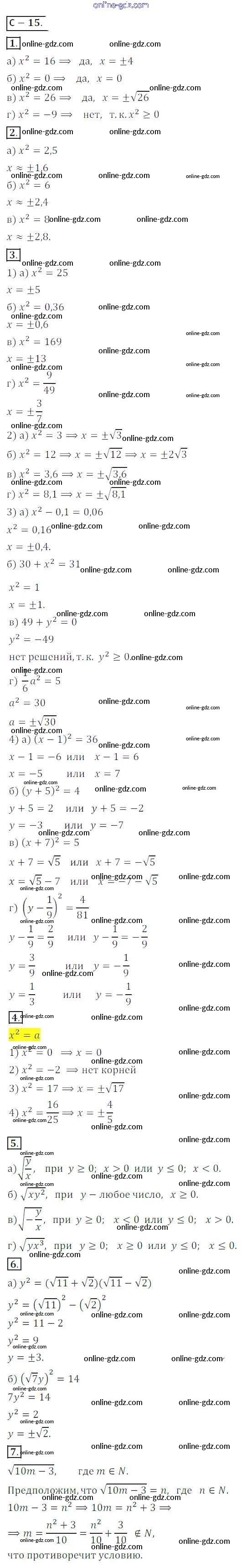 Готовые домашние задания по Алгебре за 8 класс Дидактические материалы Жохов, Макарычев 2014 - Вариант 1 Самостоятельные работы СР №15