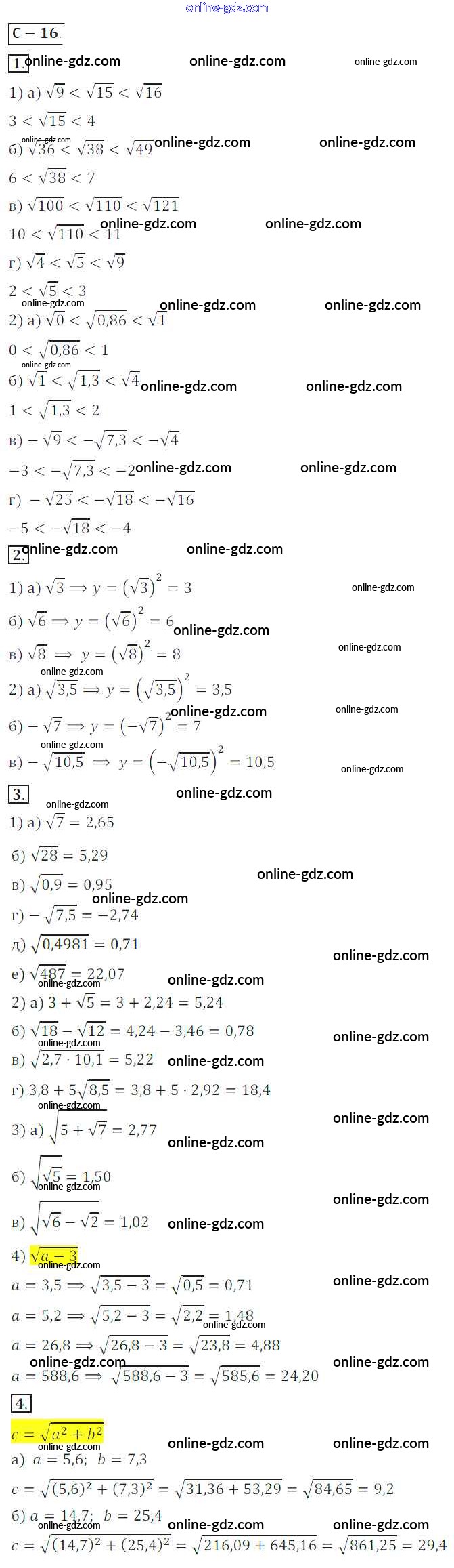 Готовые домашние задания по Алгебре за 8 класс Дидактические материалы Жохов, Макарычев 2014 - Вариант 1 Самостоятельные работы СР №16