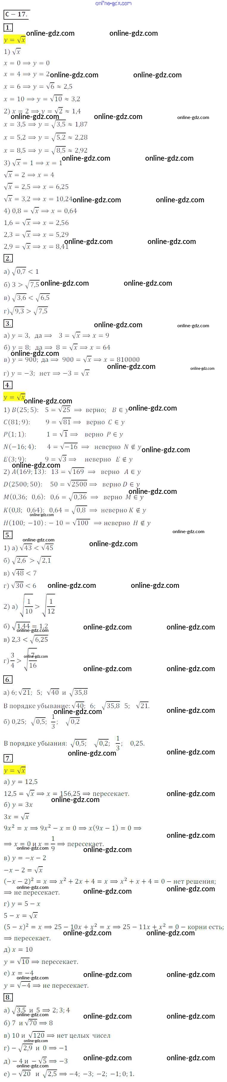 Готовые домашние задания по Алгебре за 8 класс Дидактические материалы Жохов, Макарычев 2014 - Вариант 1 Самостоятельные работы СР №17