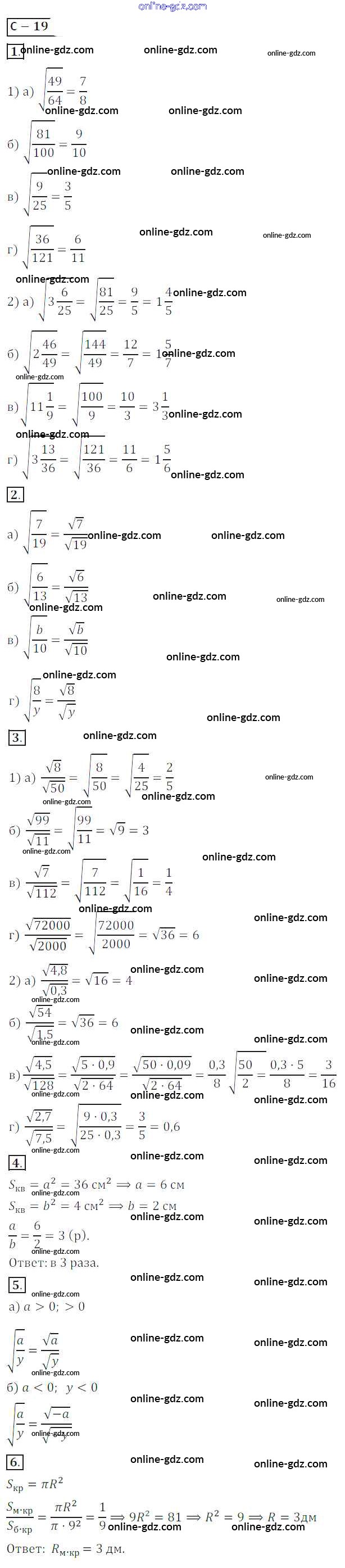 Готовые домашние задания по Алгебре за 8 класс Дидактические материалы Жохов, Макарычев 2014 - Вариант 1 Самостоятельные работы СР №19
