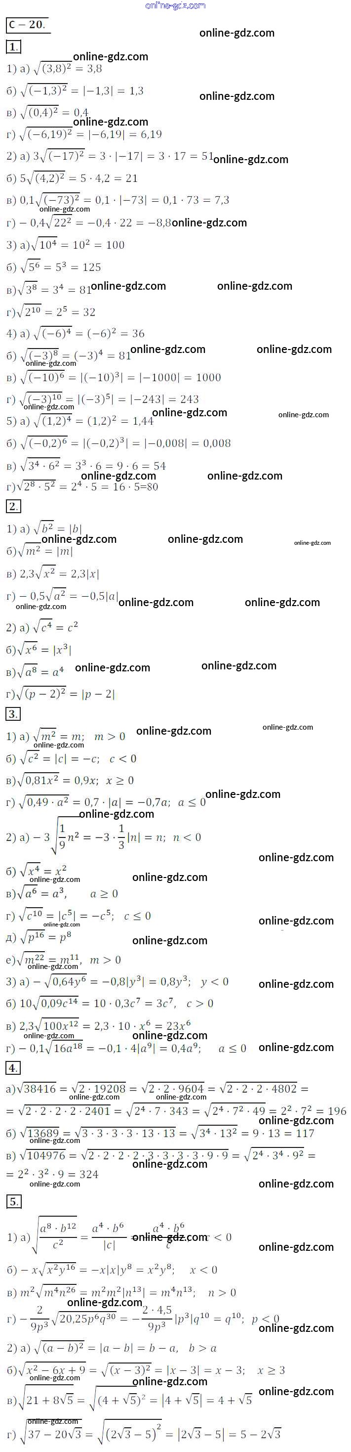 Готовые домашние задания по Алгебре за 8 класс Дидактические материалы Жохов, Макарычев 2014 - Вариант 1 Самостоятельные работы СР №20