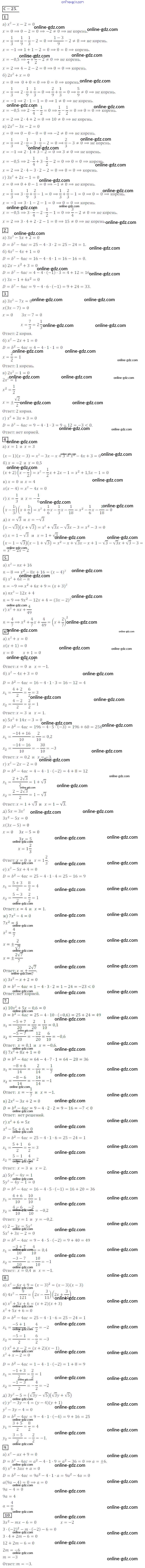 Готовые домашние задания по Алгебре за 8 класс Дидактические материалы Жохов, Макарычев 2014 - Вариант 1 Самостоятельные работы СР №25