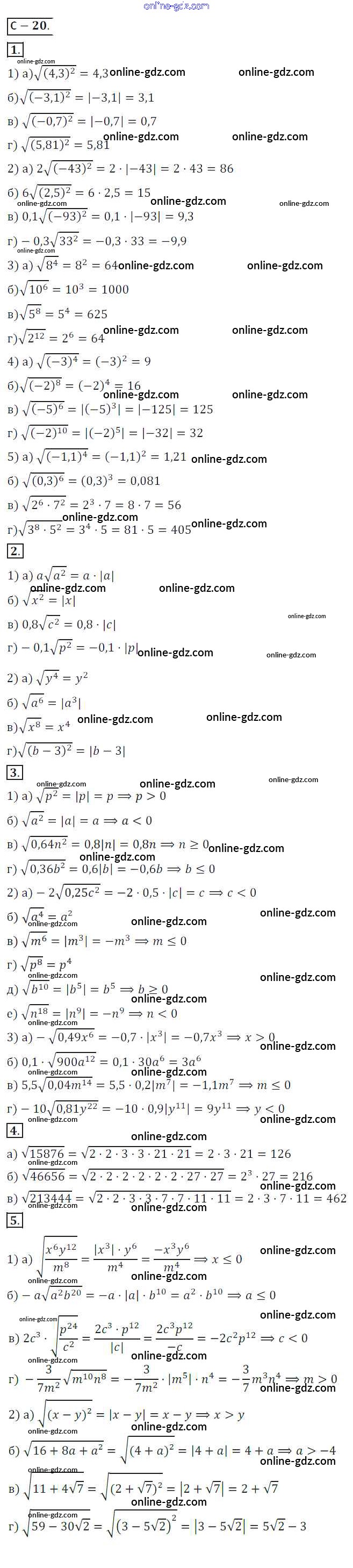Готовые домашние задания по Алгебре за 8 класс Дидактические материалы Жохов, Макарычев 2014 - Вариант 2 Самостоятельные работы СР №20