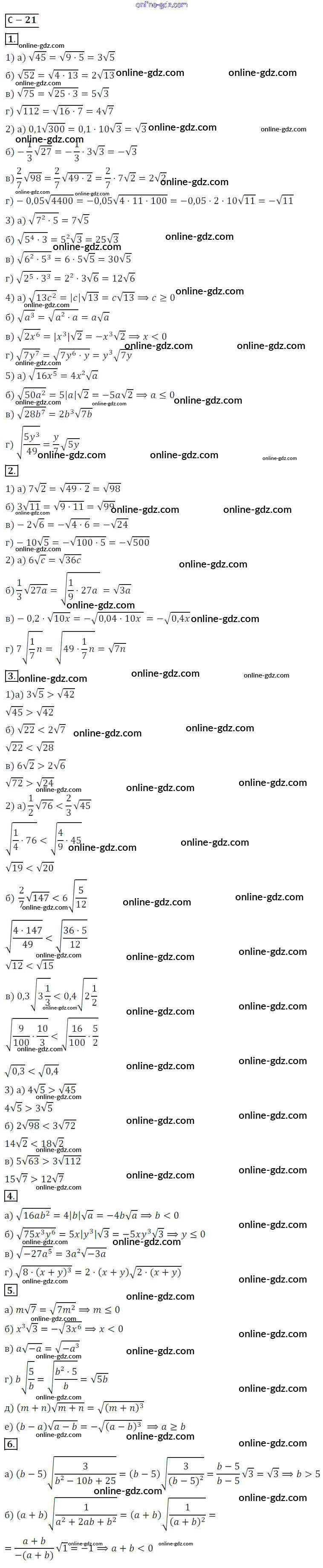 Готовые домашние задания по Алгебре за 8 класс Дидактические материалы Жохов, Макарычев 2014 - Вариант 2 Самостоятельные работы СР №21