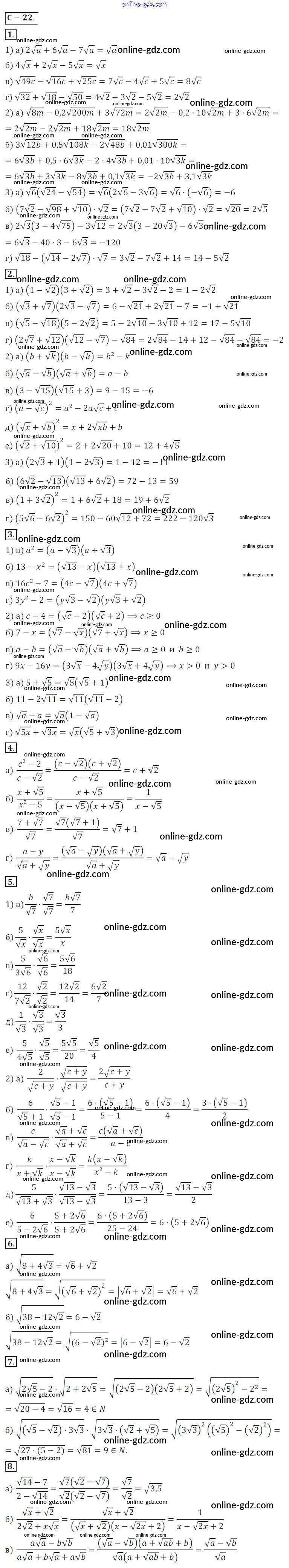 Готовые домашние задания по Алгебре за 8 класс Дидактические материалы Жохов, Макарычев 2014 - Вариант 2 Самостоятельные работы СР №22