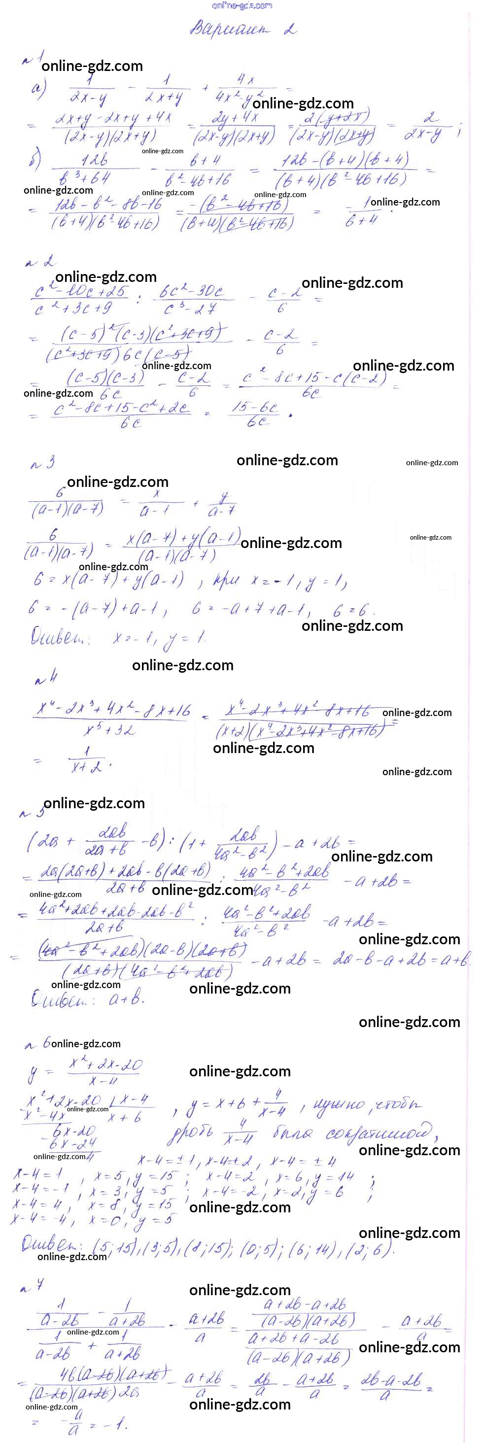 Готовые домашние задания по Алгебре за 8 класс Дидактические материалы Феоктистов 2013 - КР-1. Дроби Контрольные работы вариант 2