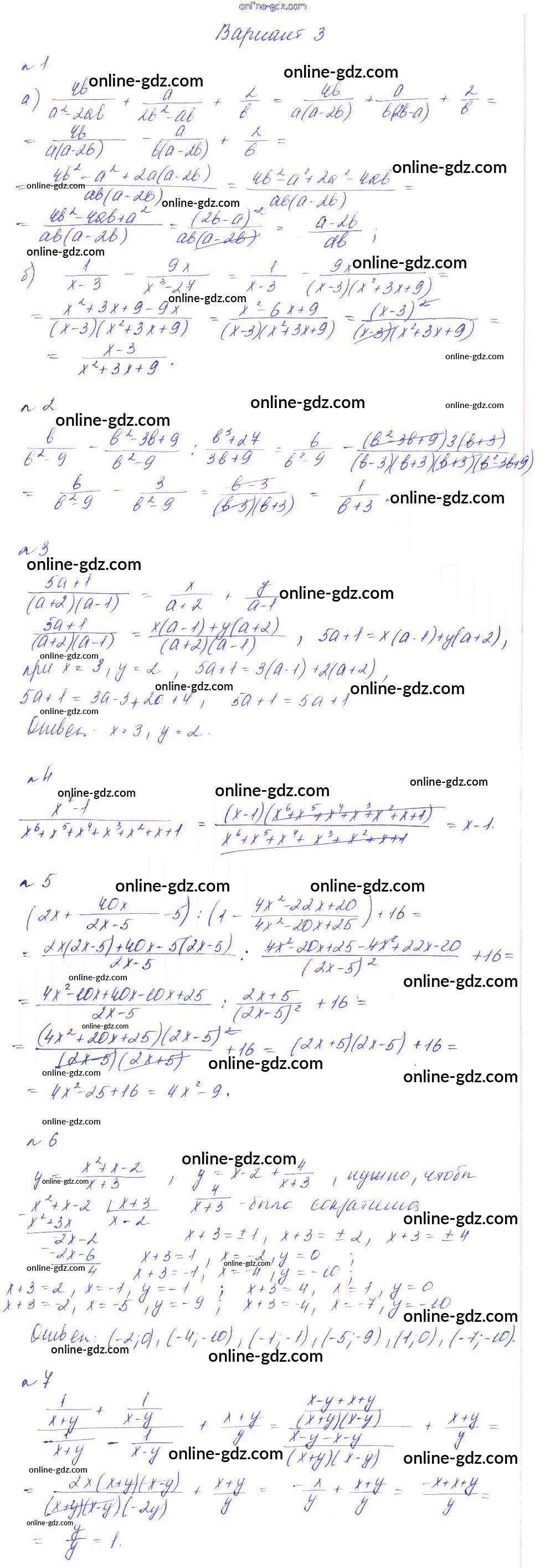 Готовые домашние задания по Алгебре за 8 класс Дидактические материалы Феоктистов 2013 - КР-1. Дроби Контрольные работы вариант 3