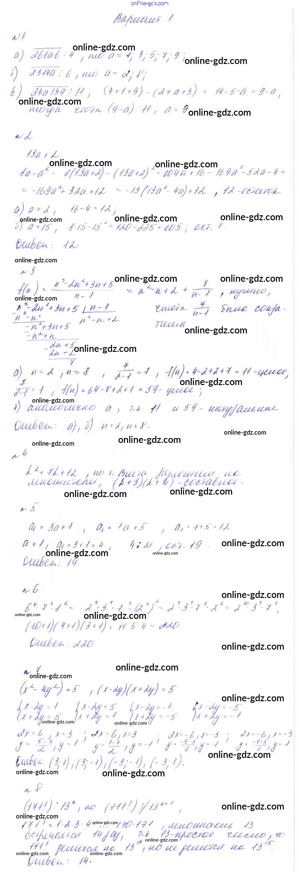 Готовые домашние задания по Алгебре за 8 класс Дидактические материалы Феоктистов 2013 - КР-2. Целые числа. Делимость чисел Контрольные работы вариант 1