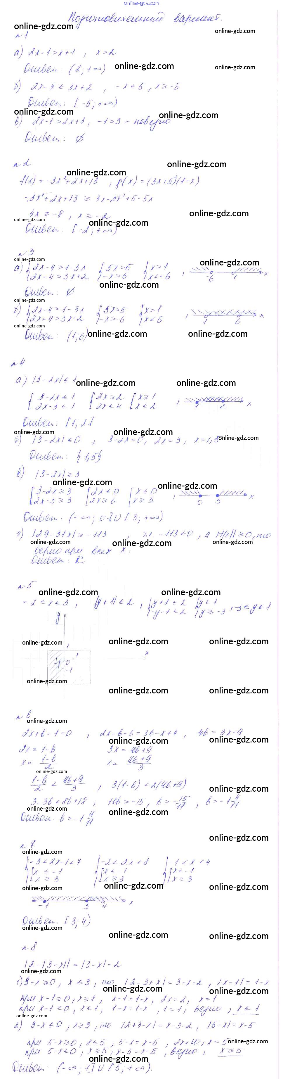 Готовые домашние задания по Алгебре за 8 класс Дидактические материалы Феоктистов 2013 - КР-5. Неравенства Контрольные работы подготовительный вариант