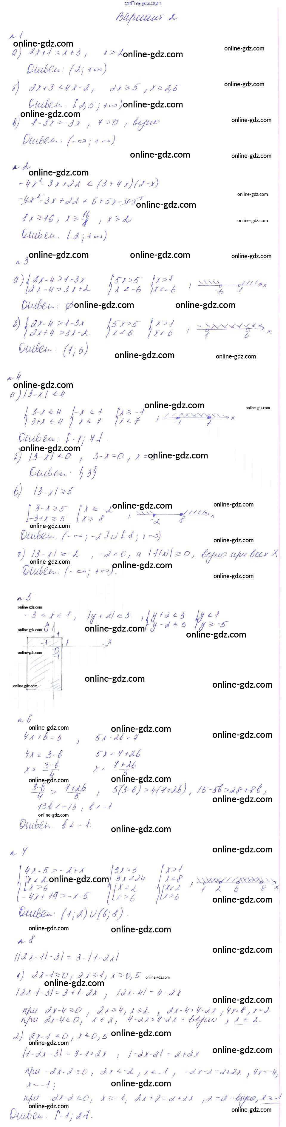 Готовые домашние задания по Алгебре за 8 класс Дидактические материалы Феоктистов 2013 - КР-5. Неравенства Контрольные работы вариант 2