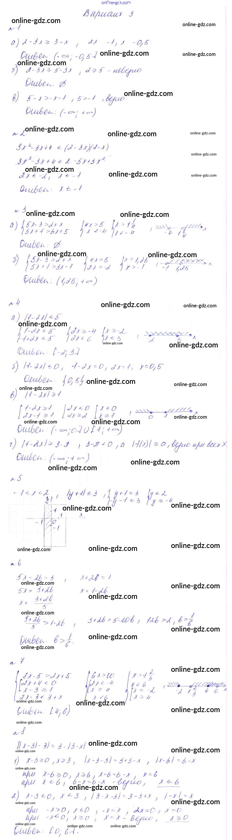 Готовые домашние задания по Алгебре за 8 класс Дидактические материалы Феоктистов 2013 - КР-5. Неравенства Контрольные работы вариант 3