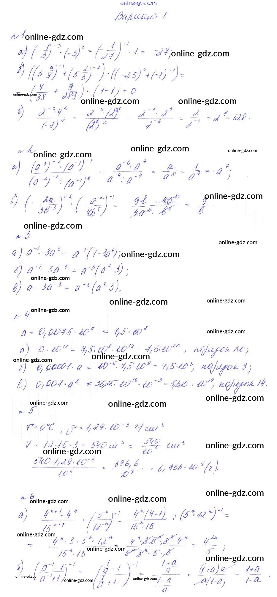 Готовые домашние задания по Алгебре за 8 класс Дидактические материалы Феоктистов 2013 - КР-6. Степень с целым показателем Контрольные работы вариант 1