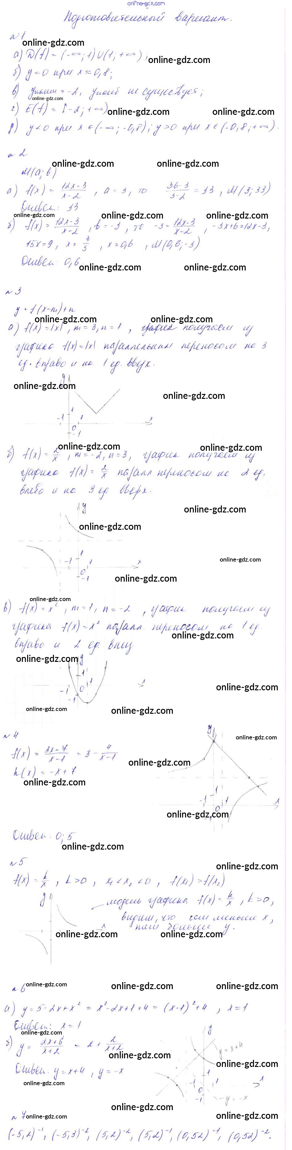 Готовые домашние задания по Алгебре за 8 класс Дидактические материалы Феоктистов 2013 - КР-7. Функции и графики Контрольные работы подготовительный вариант