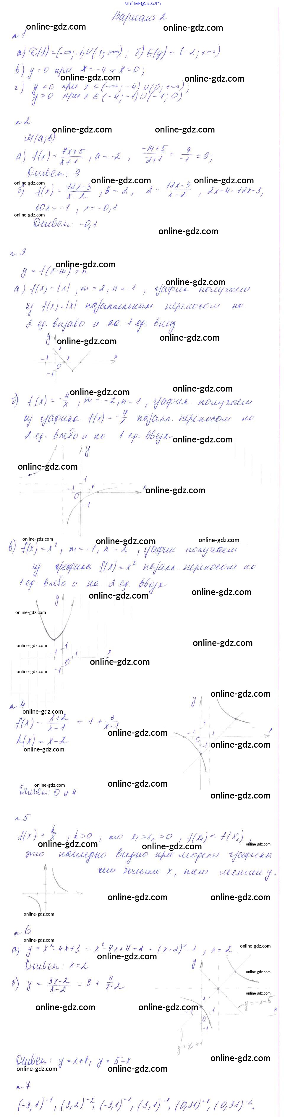 Готовые домашние задания по Алгебре за 8 класс Дидактические материалы Феоктистов 2013 - КР-7. Функции и графики Контрольные работы вариант 2