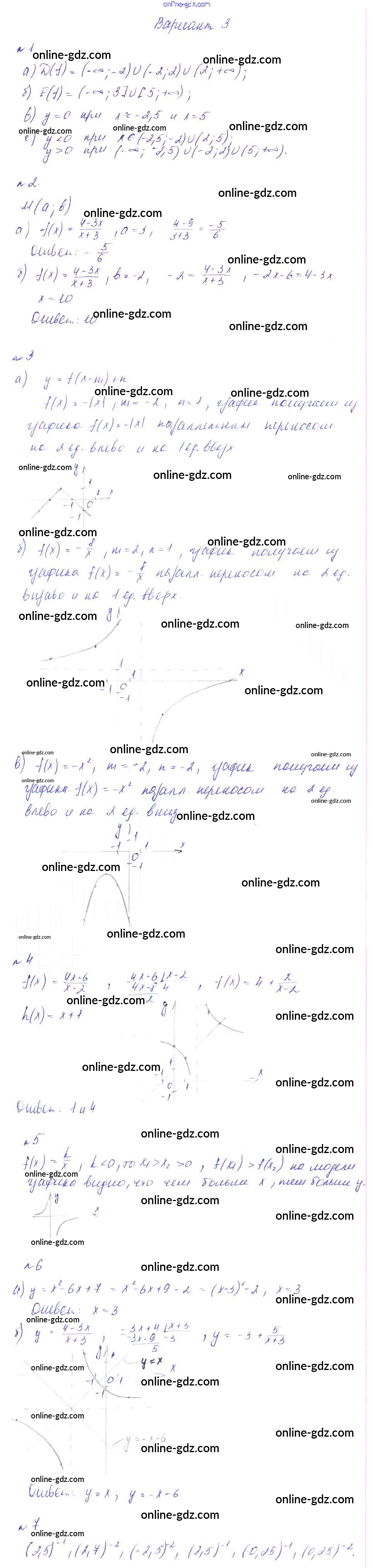 Готовые домашние задания по Алгебре за 8 класс Дидактические материалы Феоктистов 2013 - КР-7. Функции и графики Контрольные работы вариант 3
