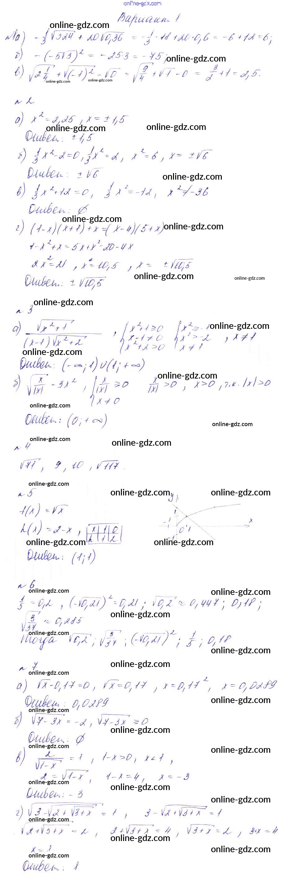 Готовые домашние задания по Алгебре за 8 класс Дидактические материалы Феоктистов 2013 - СР-10. Арифметические квадратный корень. Функция y = √x Самостоятельные работы вариант 1