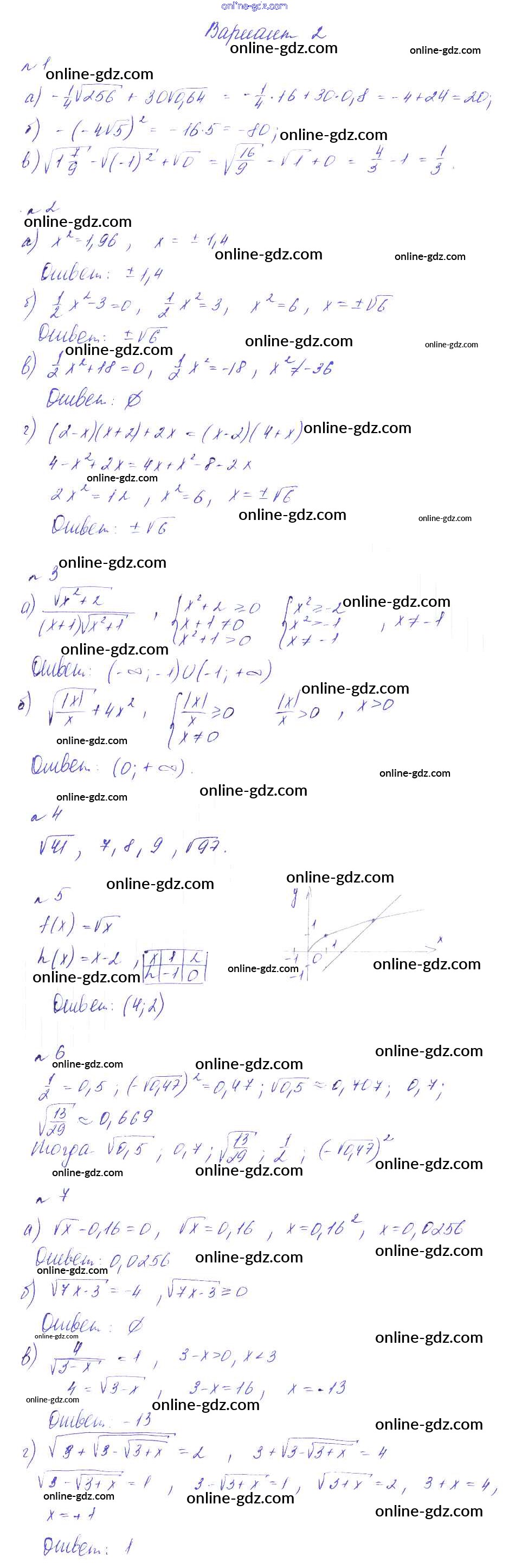 Готовые домашние задания по Алгебре за 8 класс Дидактические материалы Феоктистов 2013 - СР-10. Арифметические квадратный корень. Функция y = √x Самостоятельные работы вариант 2