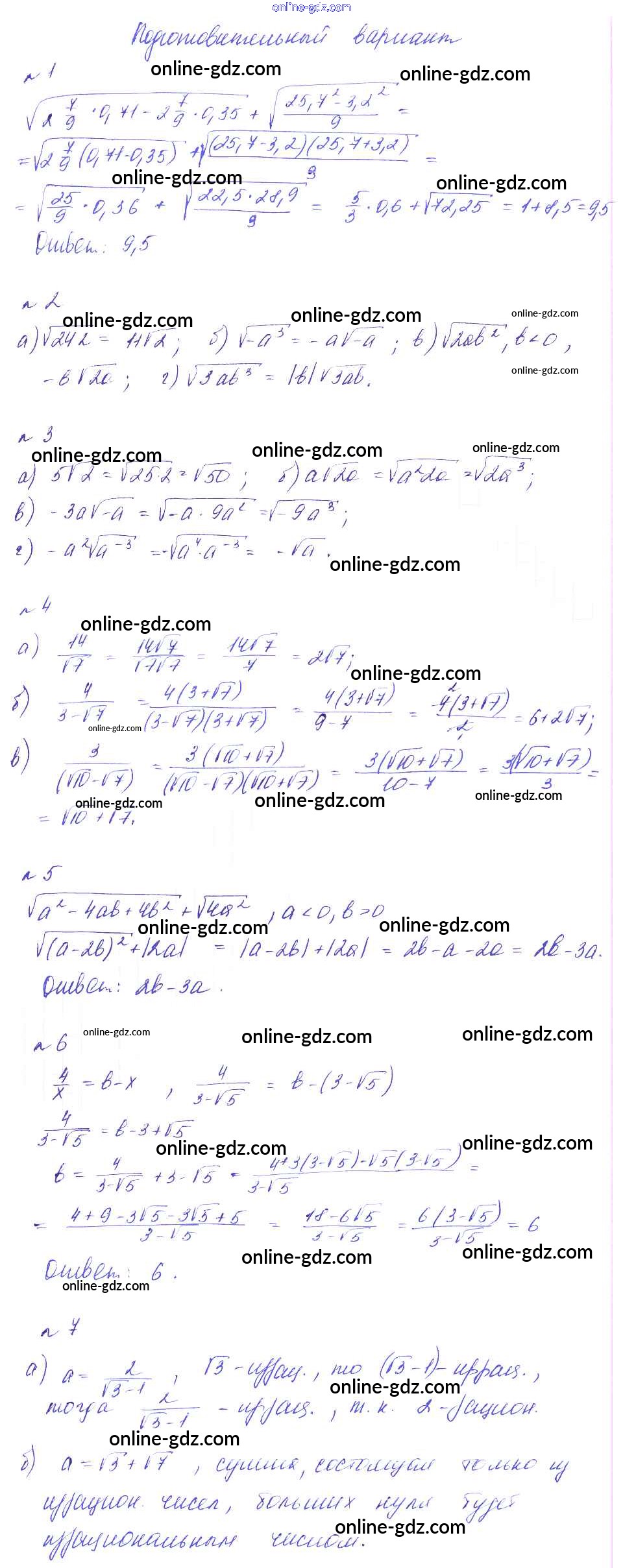 Готовые домашние задания по Алгебре за 8 класс Дидактические материалы Феоктистов 2013 - СР-11. Свойства арифметического квадратного корня Самостоятельные работы подготовительный вариант
