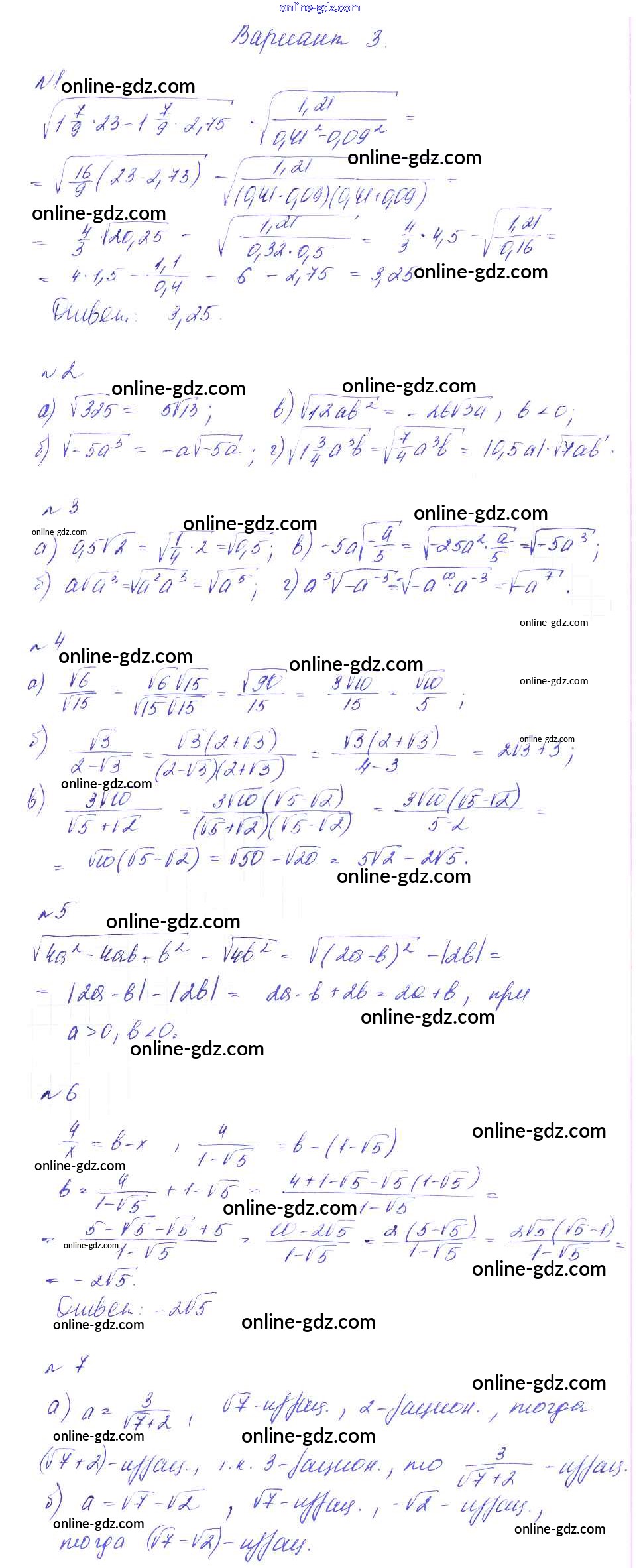 Готовые домашние задания по Алгебре за 8 класс Дидактические материалы Феоктистов 2013 - СР-11. Свойства арифметического квадратного корня Самостоятельные работы вариант 3