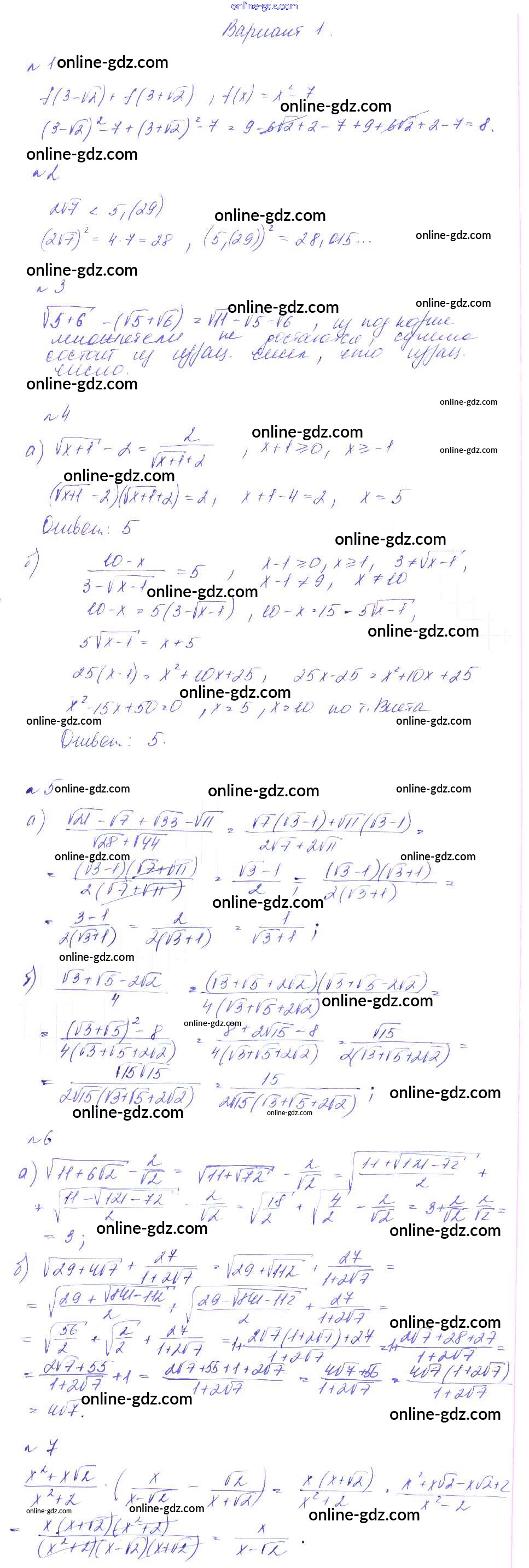 Готовые домашние задания по Алгебре за 8 класс Дидактические материалы Феоктистов 2013 - СР-12. Преобразование сложных радикалов Самостоятельные работы вариант 1