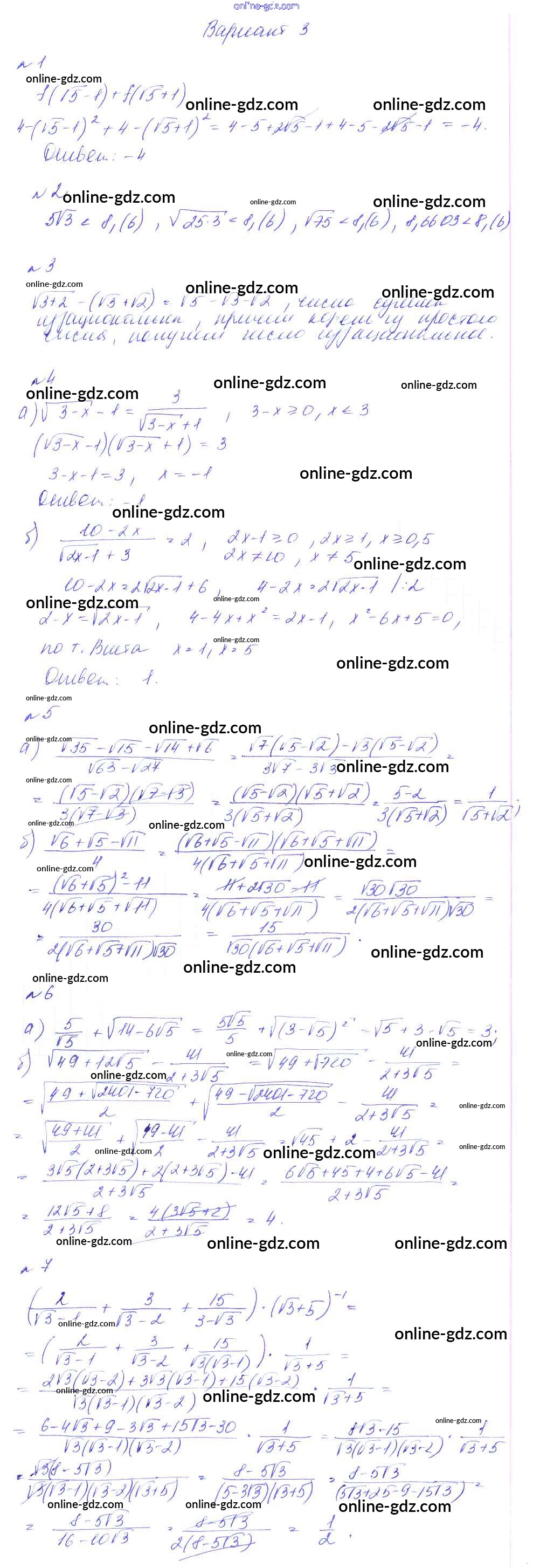Готовые домашние задания по Алгебре за 8 класс Дидактические материалы Феоктистов 2013 - СР-12. Преобразование сложных радикалов Самостоятельные работы вариант 3