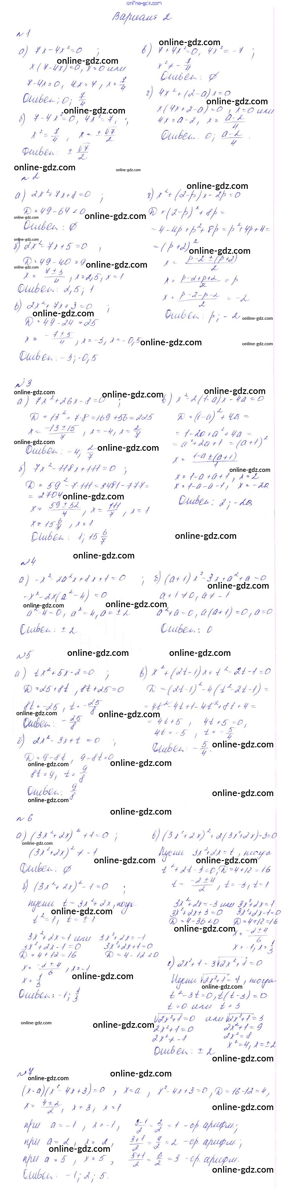 Готовые домашние задания по Алгебре за 8 класс Дидактические материалы Феоктистов 2013 - СР-13. Квадратные уравнения Самостоятельные работы вариант 2
