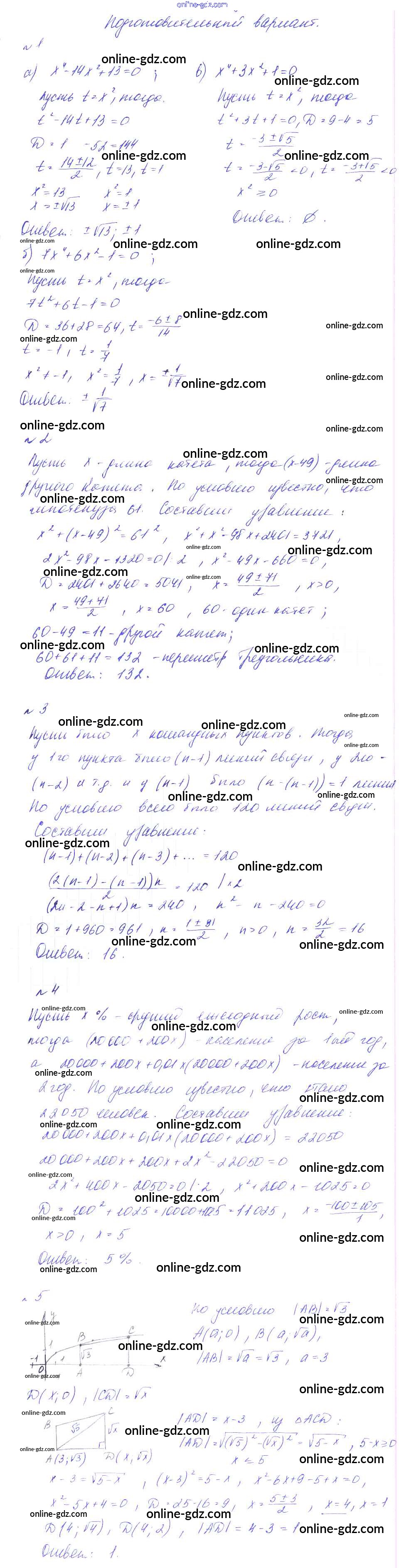 Готовые домашние задания по Алгебре за 8 класс Дидактические материалы Феоктистов 2013 - СР-14. Биквадратные уравнения. Решение задач с помощью квадратных уравнений Самостоятельные работы подготовительный вариант