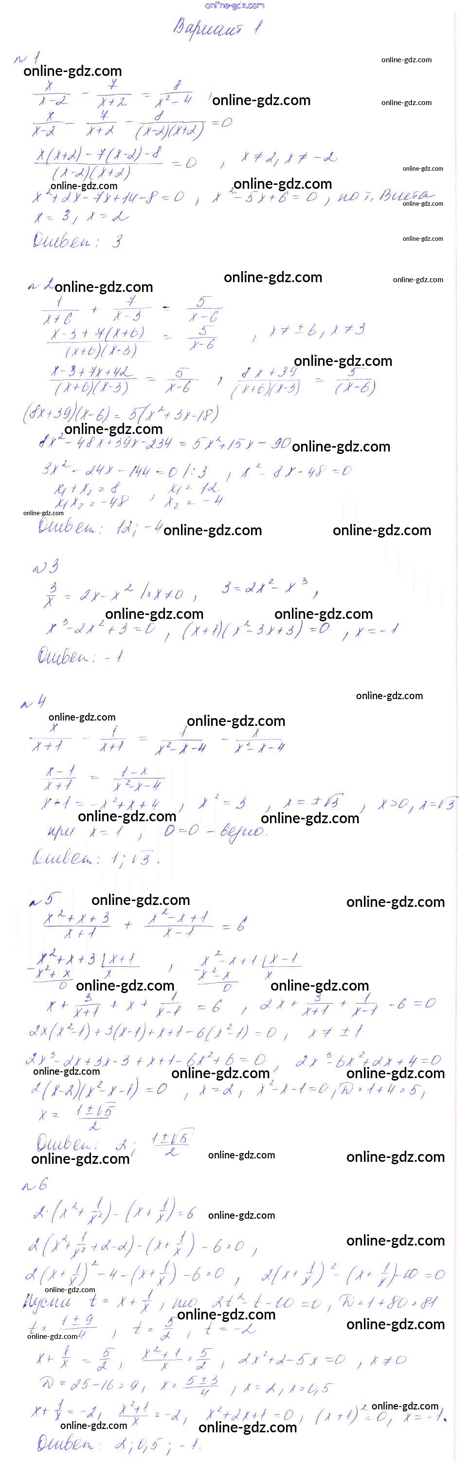 Готовые домашние задания по Алгебре за 8 класс Дидактические материалы Феоктистов 2013 - СР-16. Решение дробно-рациональных уравнений Самостоятельные работы вариант 1