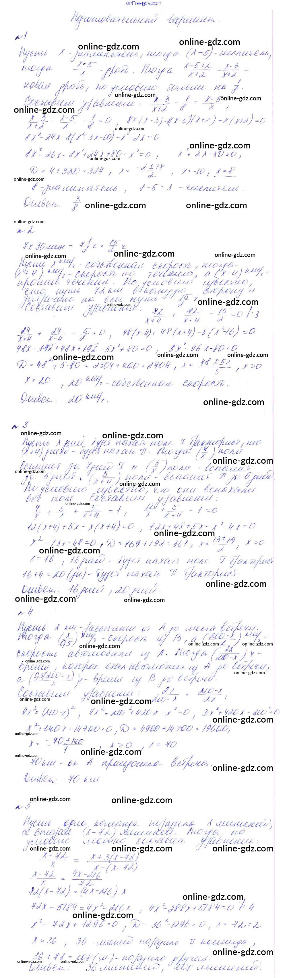 Готовые домашние задания по Алгебре за 8 класс Дидактические материалы Феоктистов 2013 - СР-17. Решение задач с помощью дробно-рациональных уравнений Самостоятельные работы подготовительный вариант