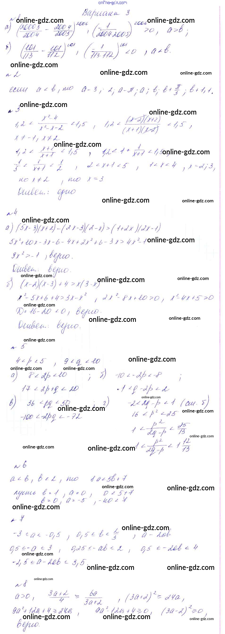 Готовые домашние задания по Алгебре за 8 класс Дидактические материалы Феоктистов 2013 - СР-18. Свойства числовых неравенств, оценка значений выражений, доказательство неравенств Самостоятельные работы вариант 3